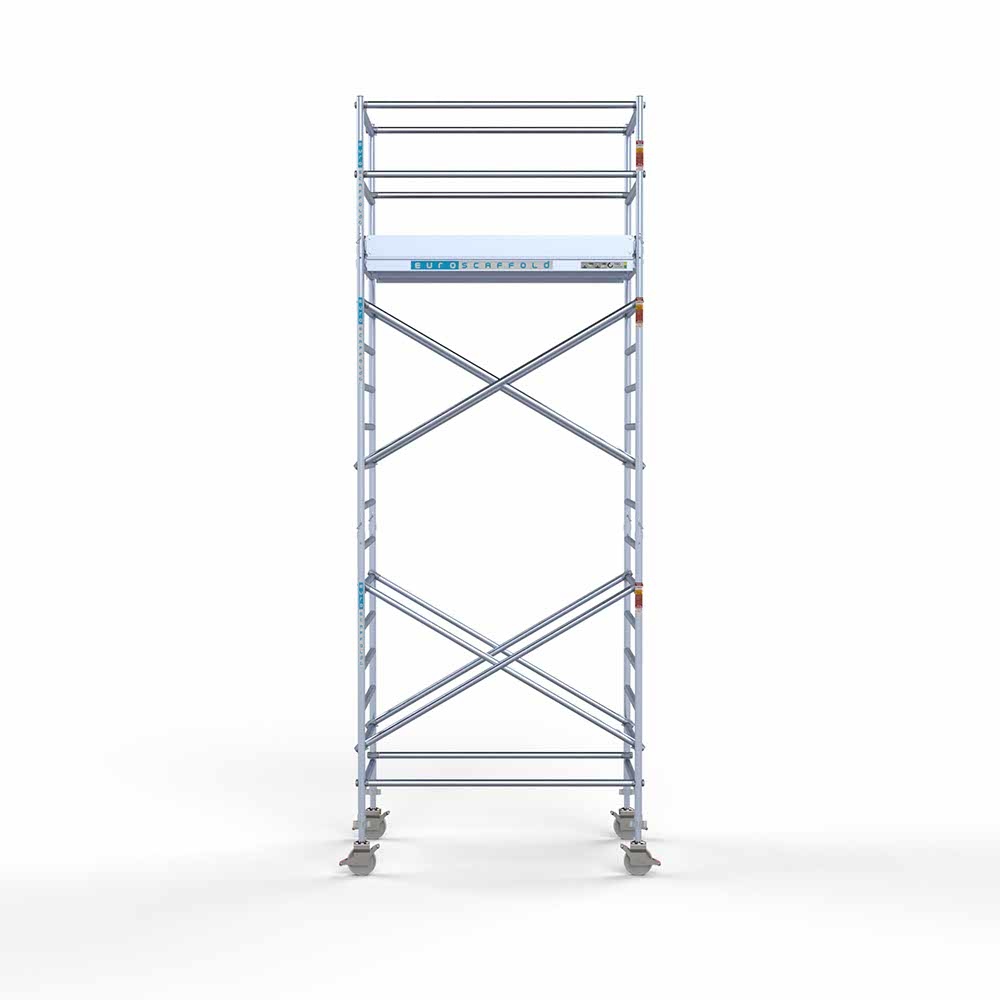 Deze rolsteiger heeft een werkhoogte van 6.2 meter en is inclusief aanhanger zodat u altijd veilig met de rolsteiger de weg op kunt.