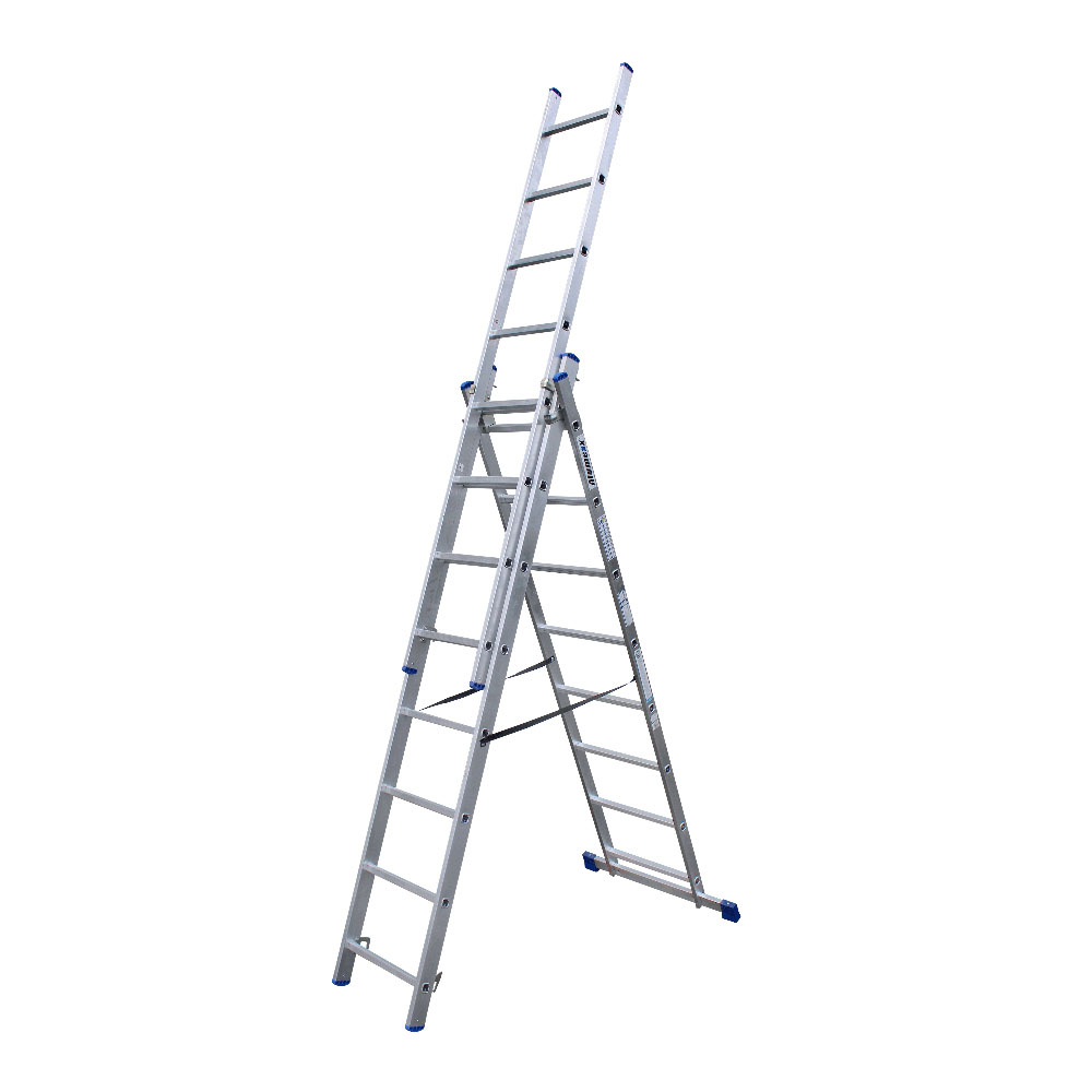 Alumexx ladder driedelig geschikt als reformladder (vrijstaande positie). Deze ladder is uitermate geschikt voor thuisklussers en doe-het-zelvers, denk aan het leeghalen van de dakgoot of het snoeien van struiken en bomen. Aantrekkelijke prijs!