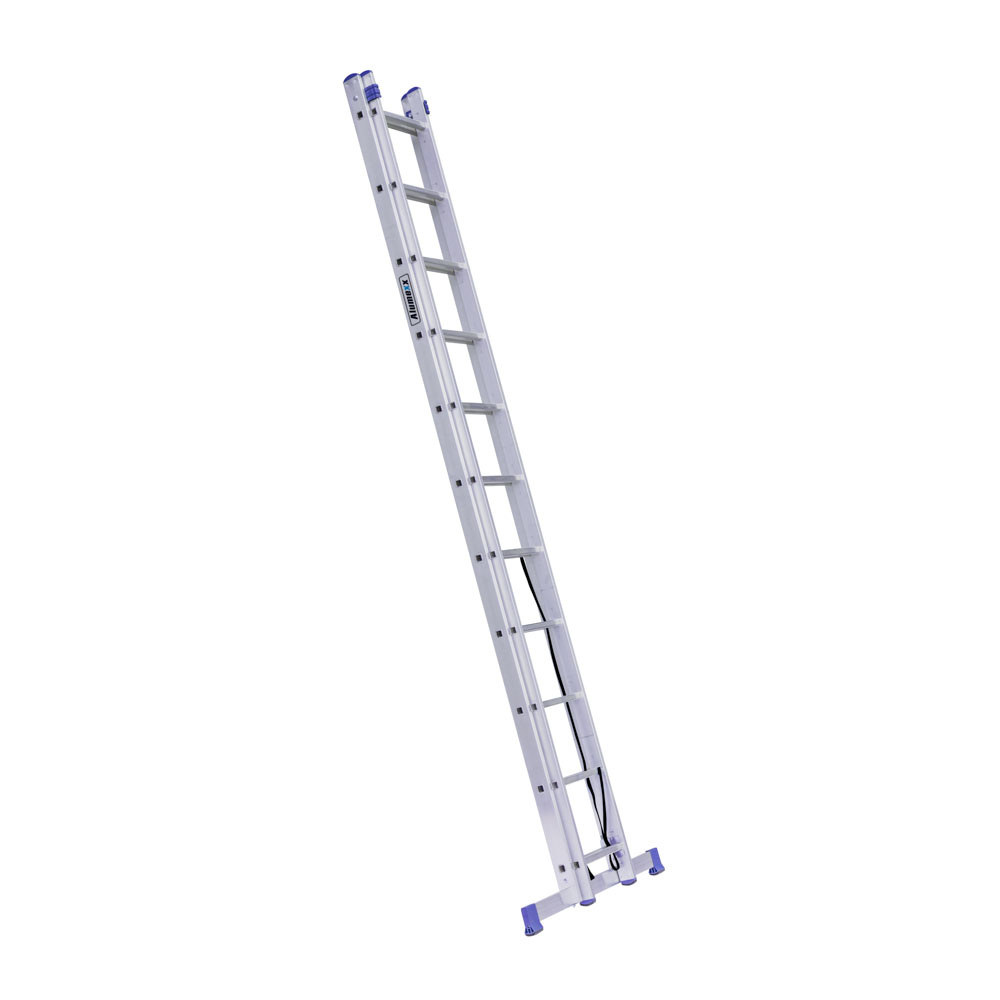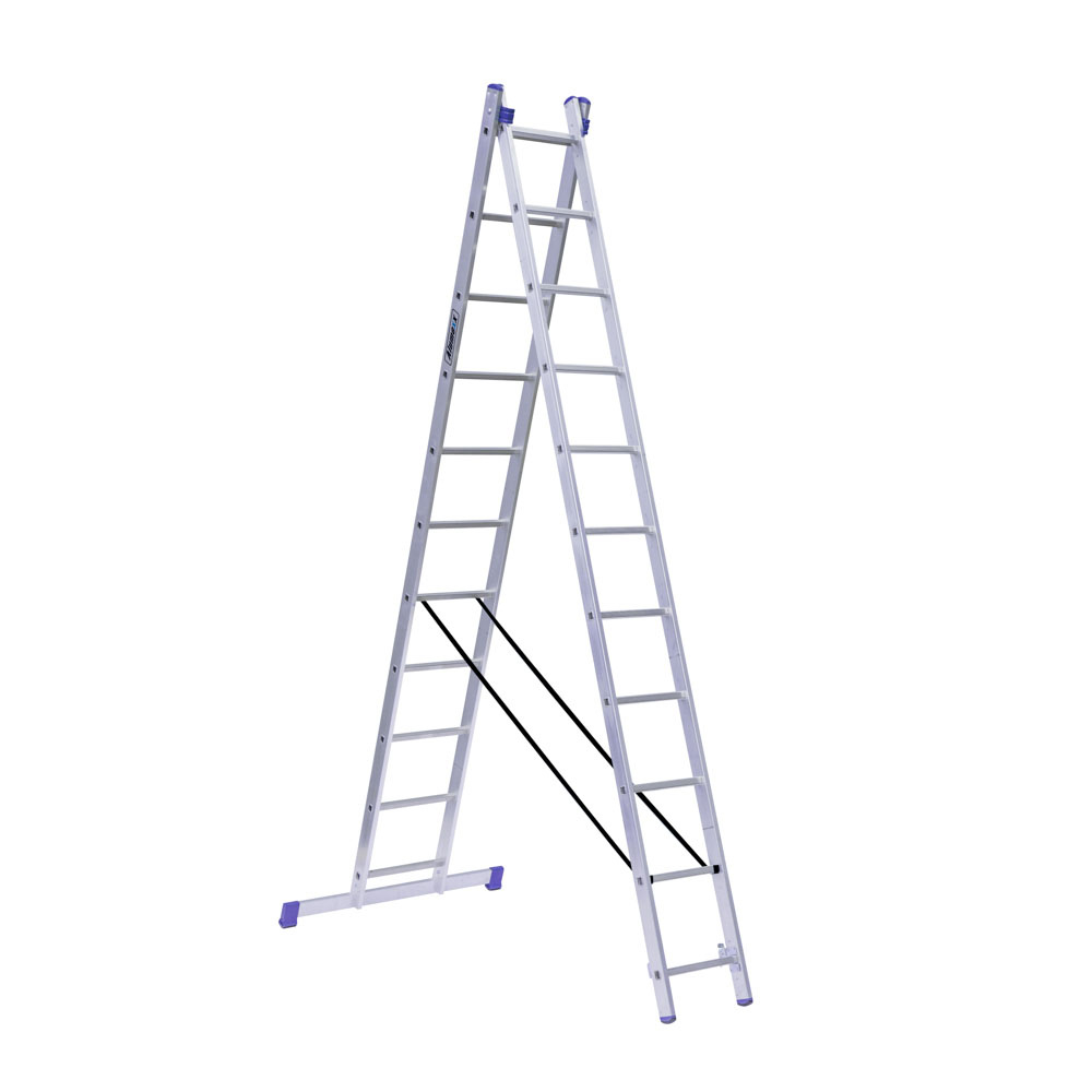 Een tweedelige opsteekladder bestaat uit twee delen die in elkaar schuiven. Dit type ladder kan verlengd worden door het bovenste deel omhoog te schuiven, waardoor het handig is voor het bereiken van grotere hoogtes. Een belangrijk kenmerk van deze ladder is dat hij tegen een muur of andere steun geplaatst moet worden, omdat de ladder niet zelfstandig kan staan. De ladder is compact en gemakkelijk op te bergen wanneer de ladder ingeschoven is.