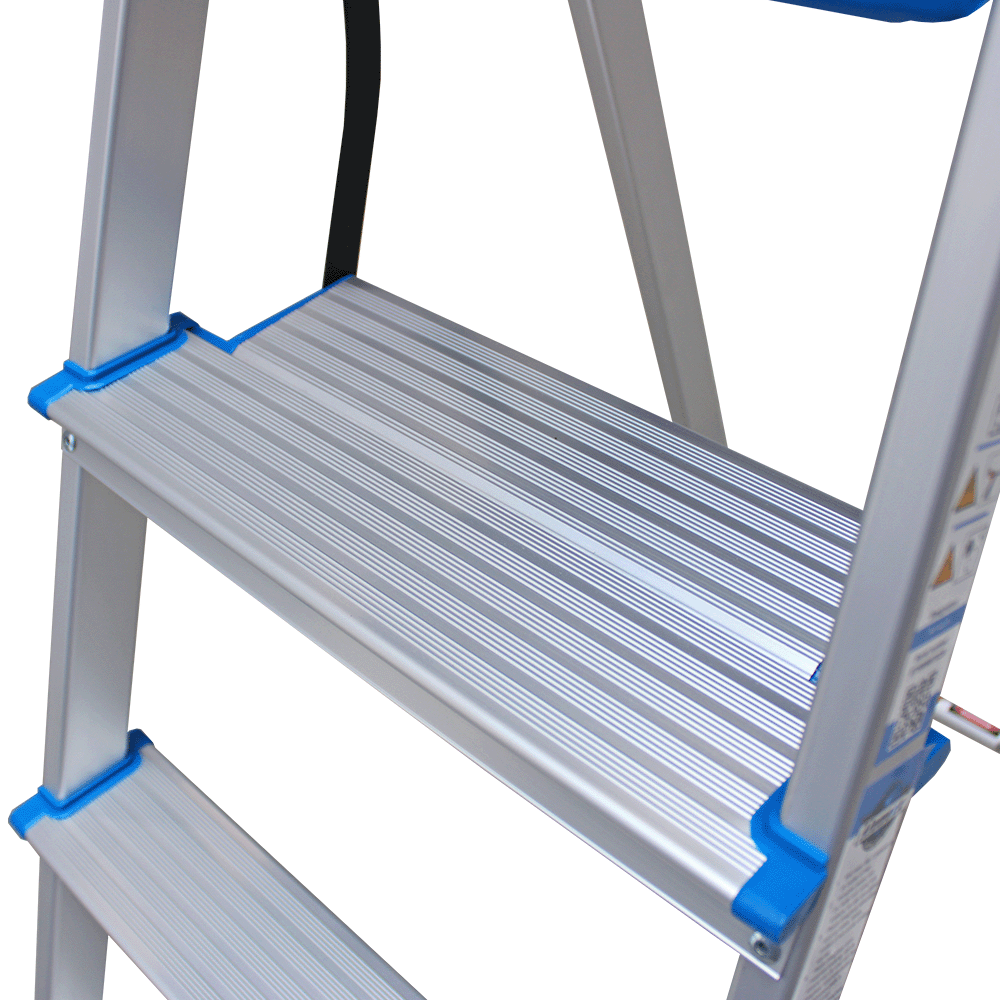Daarnaast ontvangt u de Twin Deck 4.0 4 treeds. De Alumexx Twin Deck 4.0 huishoudtrap met 4 treden is een compacte, robuuste en lichtgewicht aluminium trap die in ieder huishouden onmisbaar is. Of je nu aan de slag gaat in de keuken, woonkamer of badkamer: deze huishoudtrap klapt u eenvoudig uit en gebruikt u direct. Dankzij de dubbele treden heeft u extra sta-comfort, terwijl het ruime antislip bordes ervoor zorgt dat u altijd stevig en veilig staat.