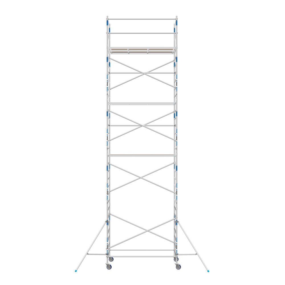 Kies de juiste werkhoogte voor uw rolsteiger. Werkhoogte wordt als volgt berekend: de hoogte van het hoogste platform plus de gemiddelde hoogte van de handen als een persoon met omhoog gestrekte armen werkt (hiervoor rekenen we 2 meter). De formule om de werkhoogte te berekenen is dus: platformhoogte + 2 meter.