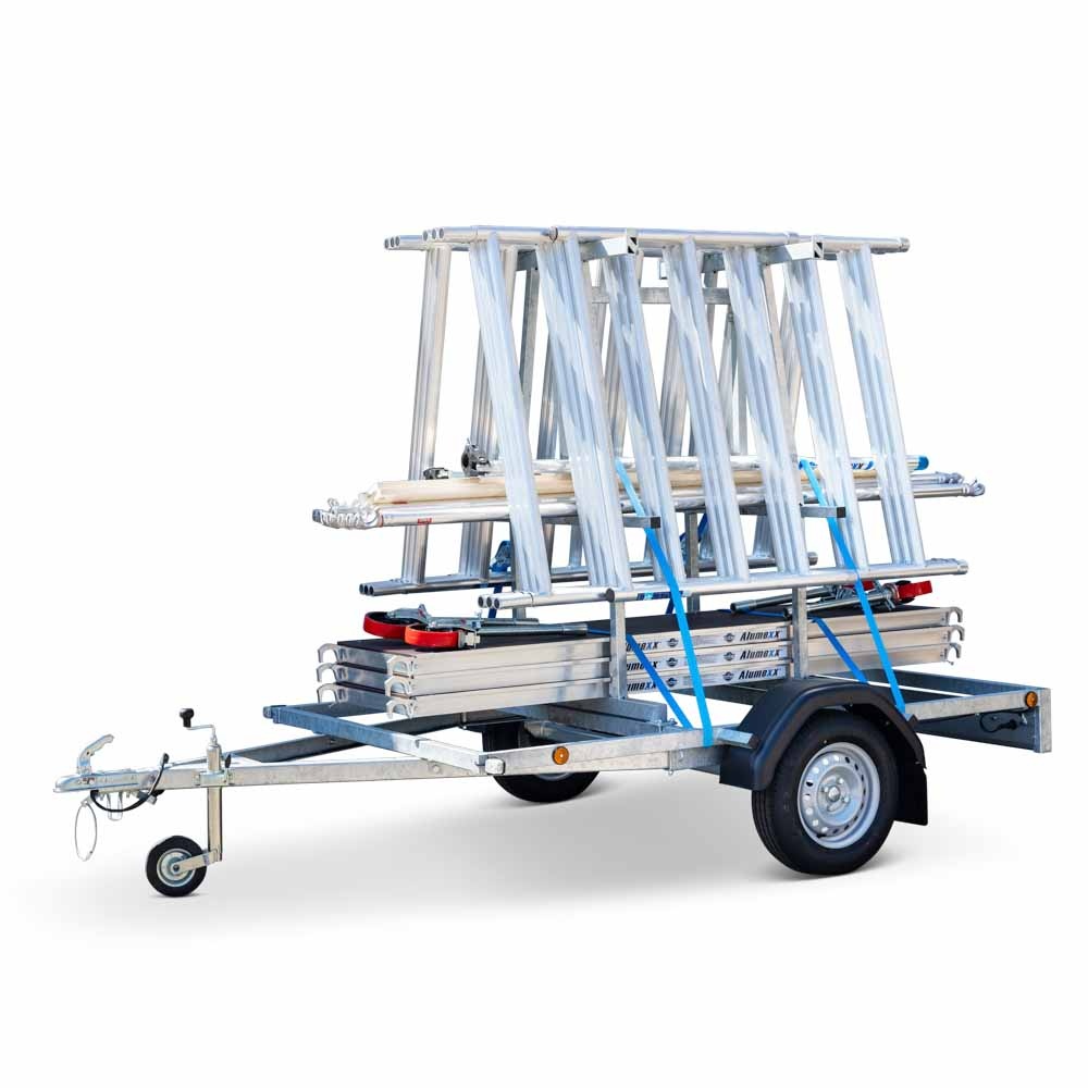 De Basic steigeraanhanger is ontworpen voor het efficiënt vervoeren van rolsteigers. Licht, compact en eenvoudig in gebruik – ideaal voor dagelijks transport van steigermateriaal.