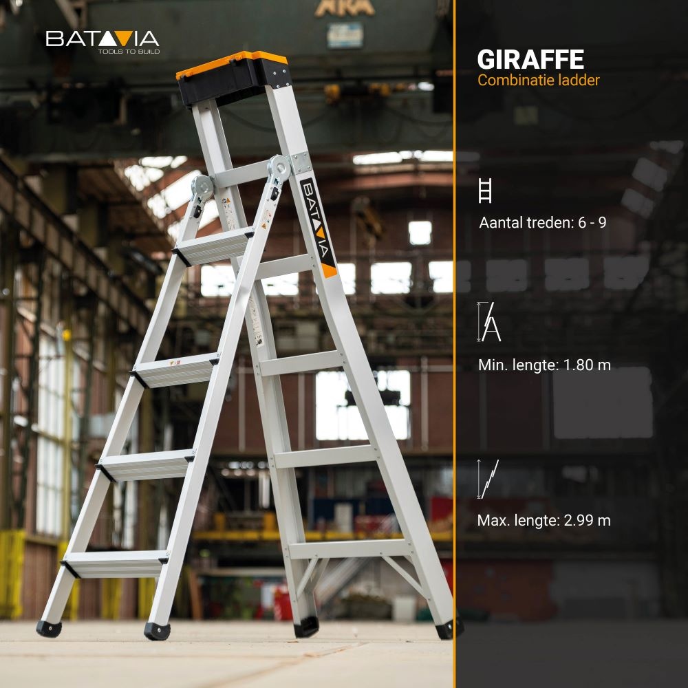 Het stevige en betrouwbare design garandeert veilig gebruik, terwijl de handige geïntegreerde gereedschapsbak zorgt dat je jouw materialen altijd bij de hand hebt. Dankzij het soepele verstelsysteem wissel je gemakkelijk tussen de verschillende ladderstanden. De Batavia 3-in-1 Multifunctionele Ladder is daarmee de perfecte partner voor zowel professionals als doe-het-zelvers die behoefte hebben aan één ladder die alles kan.