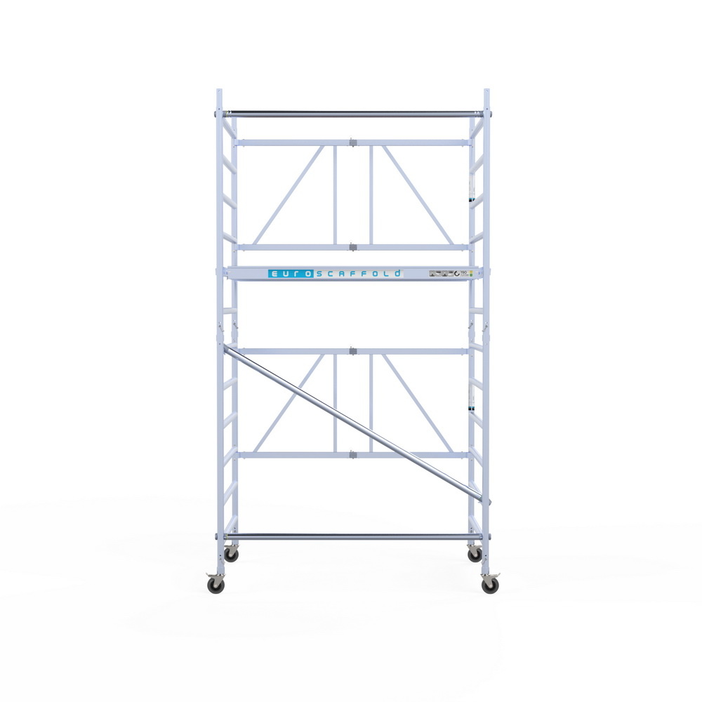 Deze combi kamersteiger is 135 cm breed, 190 cm lang en heeft een werkhoogte van maximaal 4,7 meter. Deze brede steiger van Euroscaffold heeft een groot werkoppervlak met voldoende ruimte voor al uw gereedschap. De steiger van hoogwaardig aluminium is licht en wendbaar en kan binnen een paar minuten worden op- of afgebouwd. Indien de kamersteiger vrijstaand wordt gebruikt, zijn voor extra veiligheid stabilisatoren aan te raden. De combi kamersteiger is geschikt voor binnen en buiten, en voor zowel doe-het-zelvers als professionele klussers. De steiger voldoet aan de geldende veiligheidseisen.