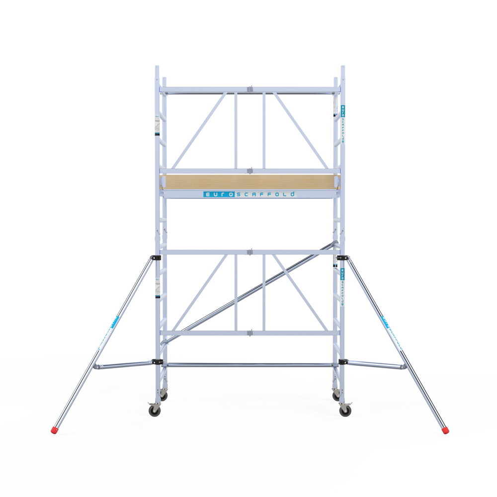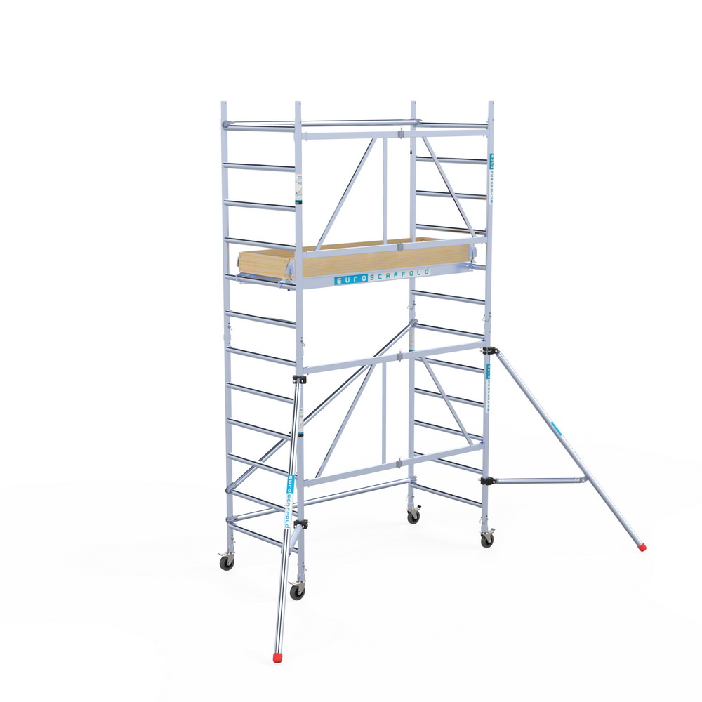 Deze combi kamersteiger van Euroscaffold is 90 cm breed, 190 cm lang en heeft een werkhoogte van maximaal 4,7 meter. De steiger van hoogwaardig aluminium is licht en wendbaar en kan binnen een paar minuten worden op- of afgebouwd. Bij vrijstaand maakt u gebruik van de bijgeleverde stabilisatoren, voor extra veiligheid. De combi kamersteiger is zowel binnen als buiten te gebruiken. De steiger is geschikt voor doe-het-zelvers en professionele klussers, en voldoet aan de geldende veiligheidseisen.