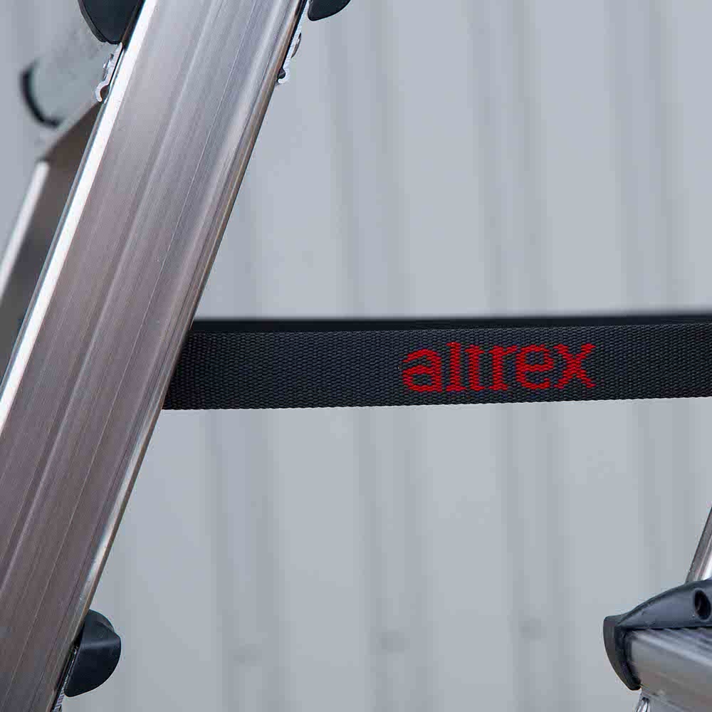 Handige huishoudtrap van Altrex met dubbele treden waardoor er een groter oppervlak ontstaat voor de voet. Dit geeft een stabielere en comfortabele positie op de trap. Dankzij de antislip coating op het bordes van de trap heeft u op het hoogste niveau grip en geen kans op wegglijden van de voeten.