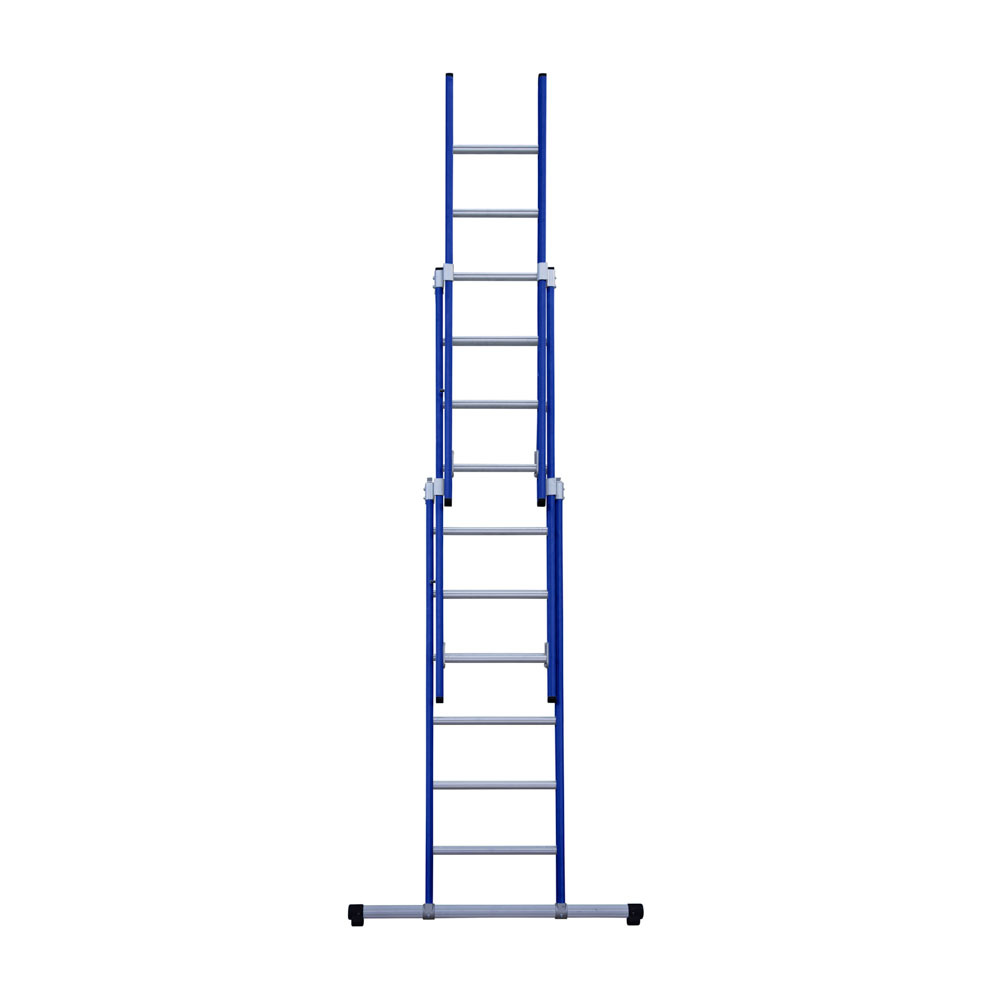 De rechte blauwe Eurostairs Reform ladder met driedubbele sporten 3x6 is ontworpen voor intensief dagelijks gebruik. Gemaakt van duurzame materialen, biedt hij uitstekende stabiliteit en veiligheid, ideaal voor professionals.