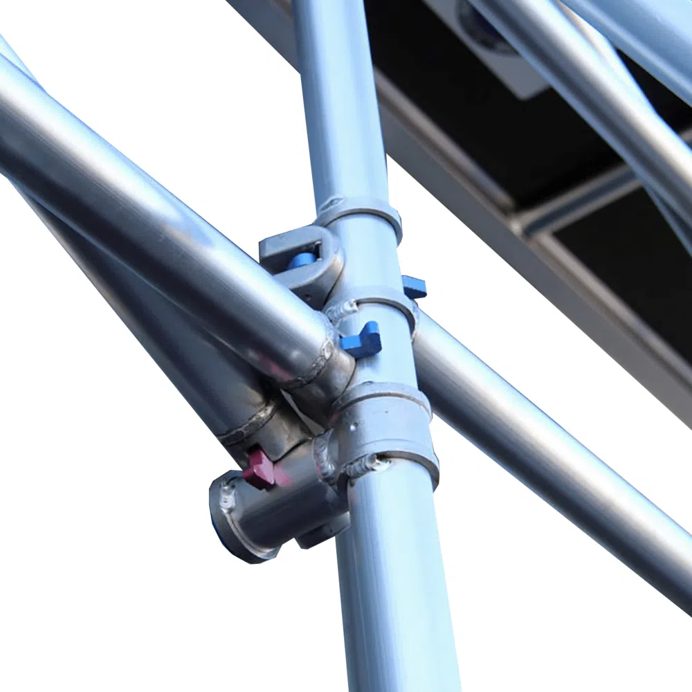 Voor grootschalige gevelwerken is de gevelsteiger van 100 m² de ideale keuze. Deze steiger biedt maximale werkruimte en stabiliteit voor professionele bouw- en renovatiebedrijven.