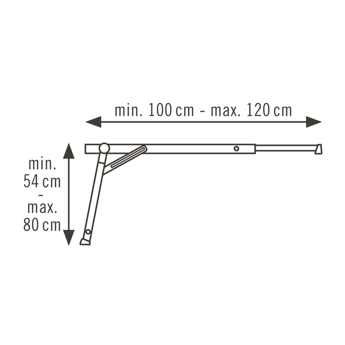 Montageafmetingen (HxBxD): 54–80 × 75 × 100–120 cm