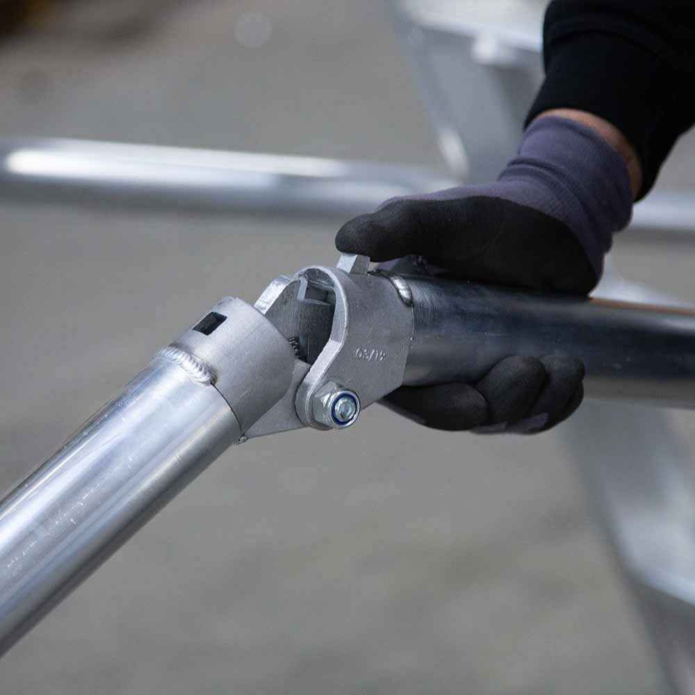 Kies de juiste werkhoogte voor uw rolsteiger. Werkhoogte wordt als volgt berekend: de hoogte van het hoogste platform plus de gemiddelde hoogte van de handen als een persoon met omhoog gestrekte armen werkt (hiervoor rekenen we 2 meter). De formule om de werkhoogte te berekenen is dus: platformhoogte + 2 meter.