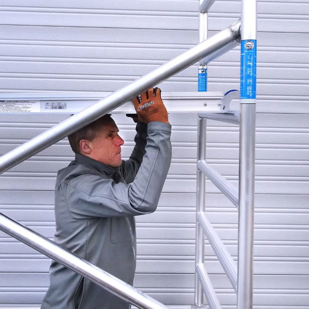 Dankzij de wielen is een rolsteiger eenvoudig te verplaatsen, zelfs door één persoon. Dit bespaart tijd en energie, vooral bij projecten waarbij de steiger vaak van plaats moet wisselen. -