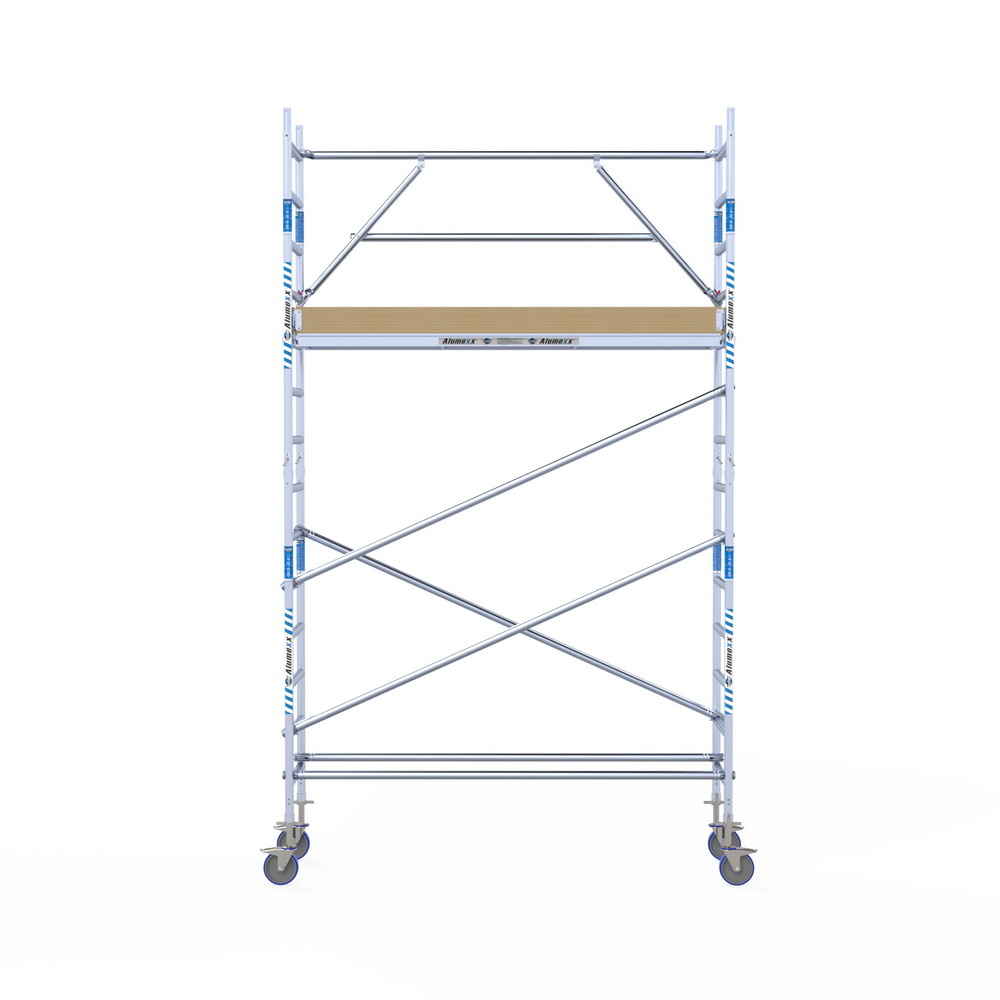 Alumexx rolsteiger "Extra" van 75 cm breed met voorloopleuning, geschikt voor semi-professioneel gebruik door thuisklussers, doe-het-zelf werkers & ZZP'ers. Eenvoudig opbouwen met behulp van de voorloopleuningen die tevens stabiliteit en veiligheid bieden