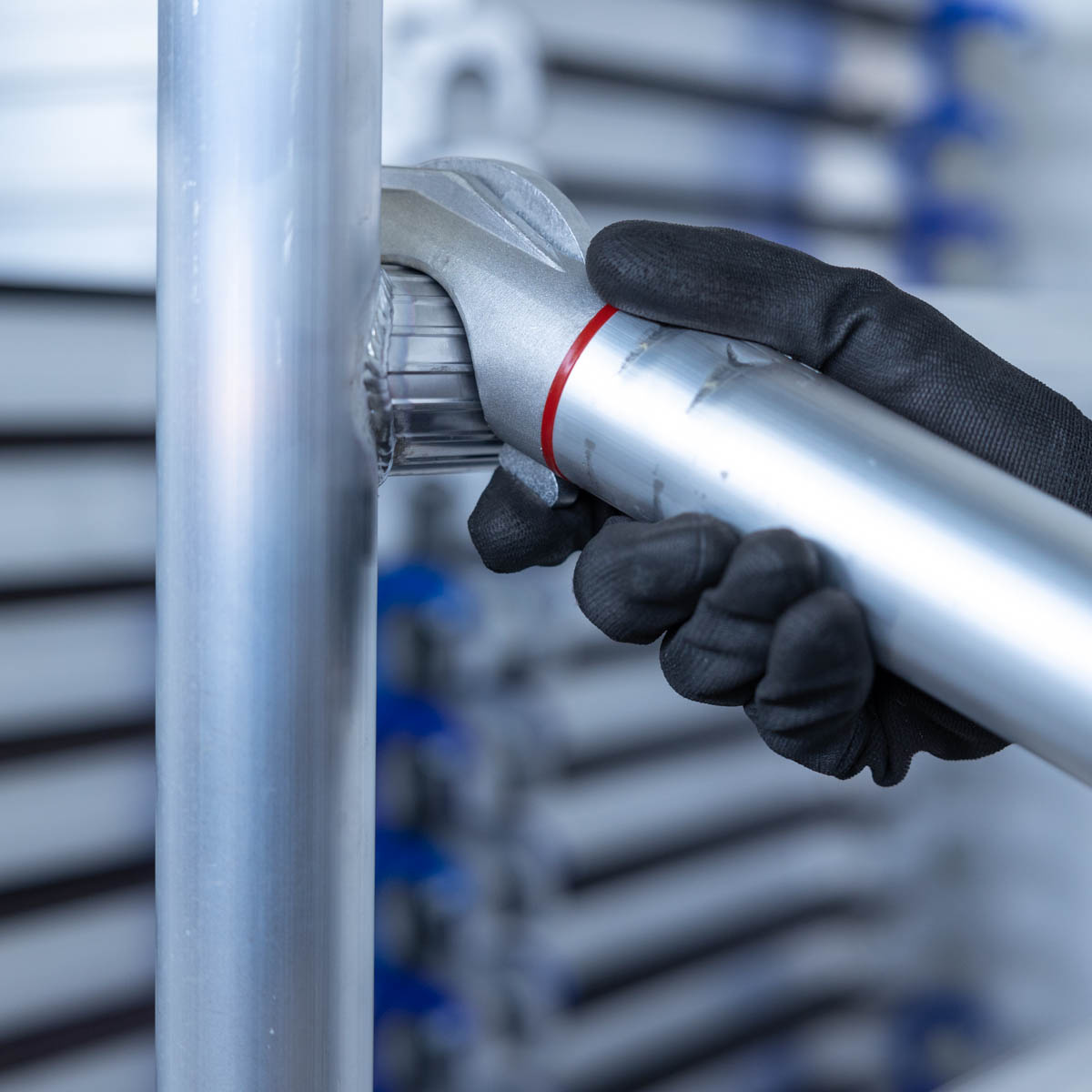 Kies de juiste werkhoogte voor uw rolsteiger. Werkhoogte wordt als volgt berekend: de hoogte van het hoogste platform plus de gemiddelde hoogte van de handen als een persoon met omhoog gestrekte armen werkt (hiervoor rekenen we 2 meter). De formule om de werkhoogte te berekenen is dus: platformhoogte + 2 meter.