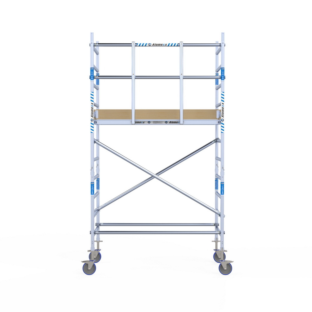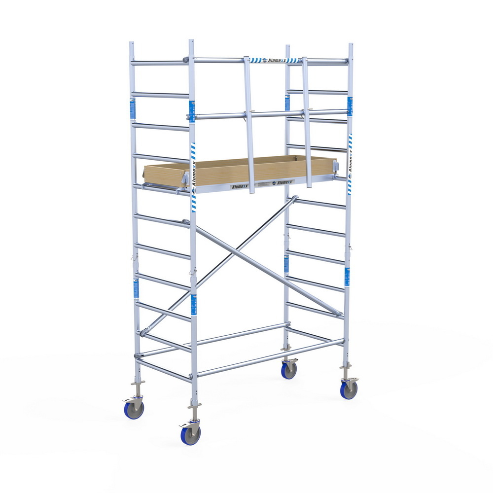 Steiger van het Nederlandse merk Alumexx, uitermate geschikt voor handige thuisklussers en doe-het-zelvers. De steiger is gemaakt van lichtgewicht aluminium (handig bij het opbouwen), bovenin voorzien van een voorloopleuning en heeft een lange levensduur!