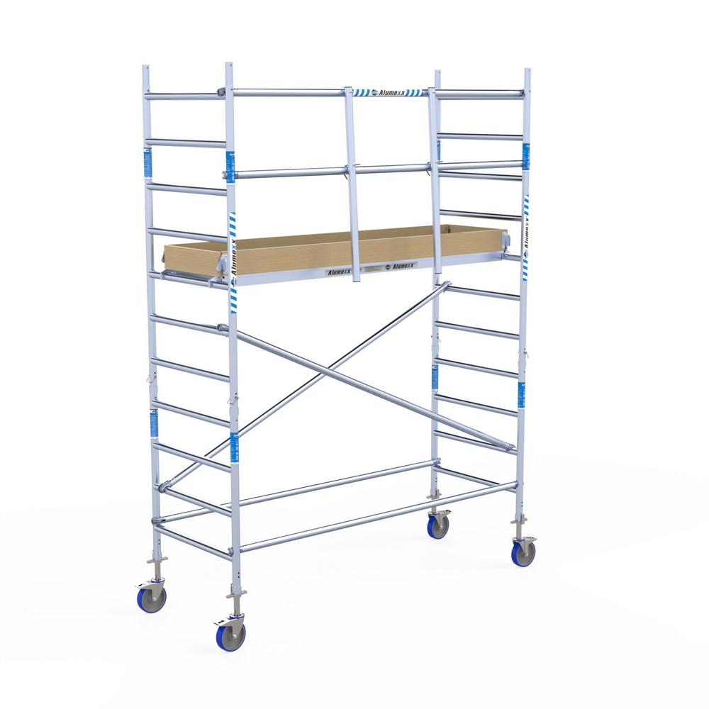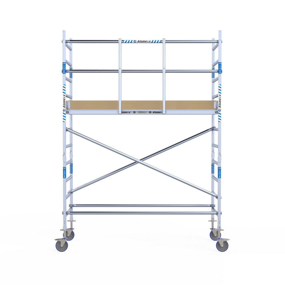 Op zoek naar een betrouwbare rolsteiger, die lang mee gaat en dat allemaal tegen aan voordelige prijs? Dan zit u bij de Alumexx "Light" goed! De steiger geschoord en bovenin voorzien van een voorloopleuning voor veilige montage en veilig werken.