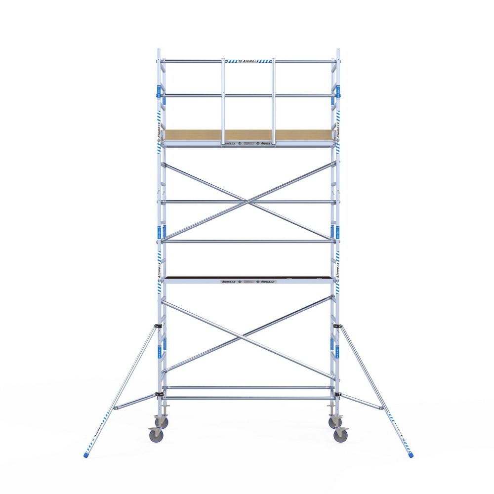 Op zoek naar een betrouwbare rolsteiger, die lang mee gaat en dat allemaal tegen aan voordelige prijs? Dan zit u bij de Alumexx "Light" goed! De steiger geschoord en bovenin voorzien van een voorloopleuning voor veilige montage en veilig werken.