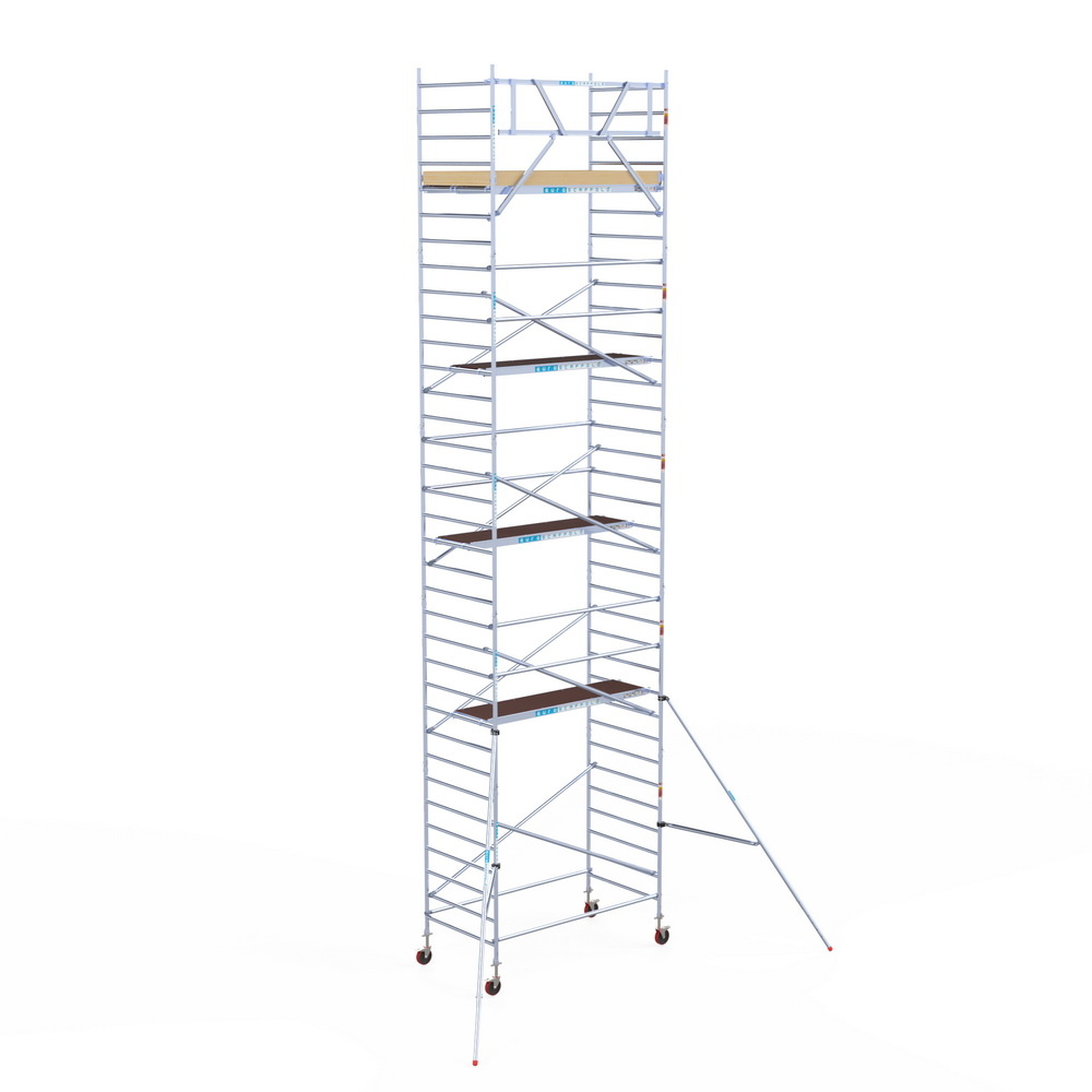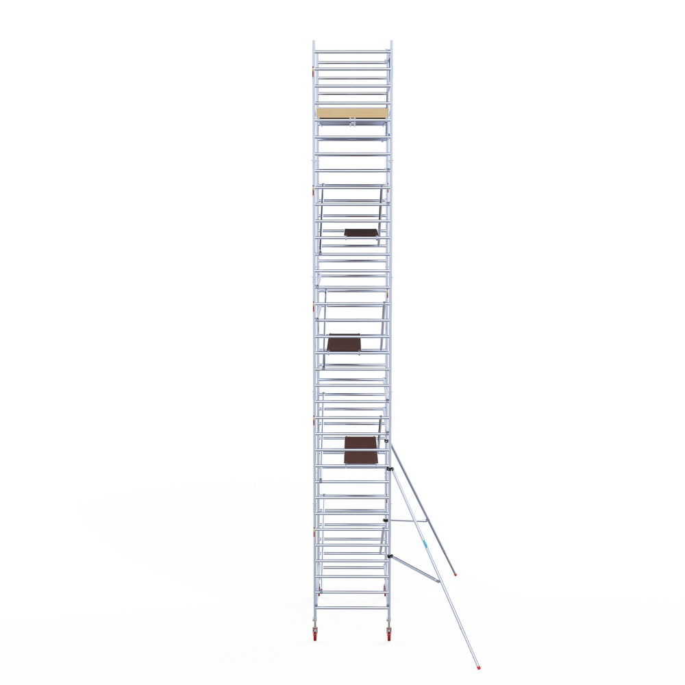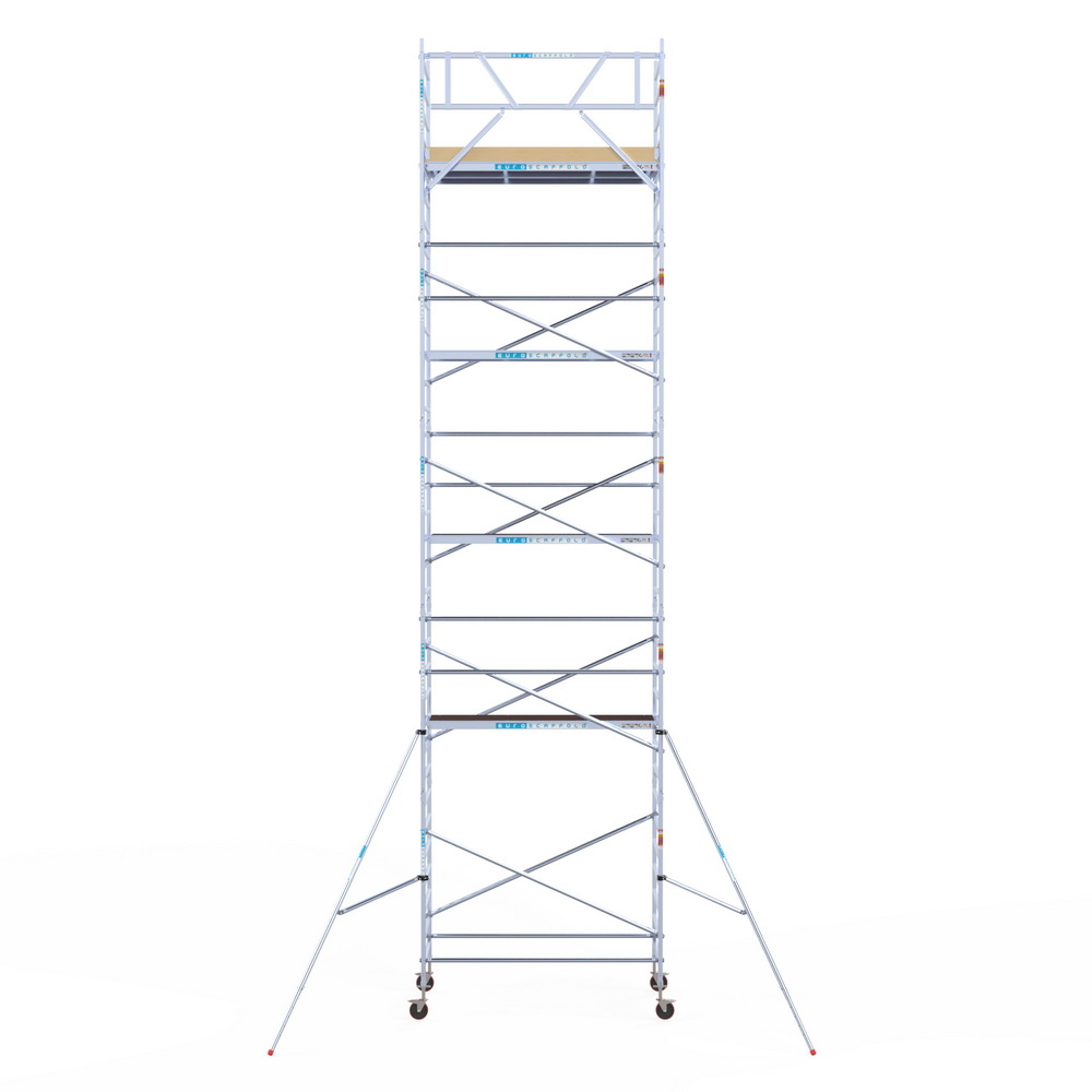 Rolsteiger Euroscaffold Basic 135x250 11,2m werkhoogte carbon vloer tegen de gevel