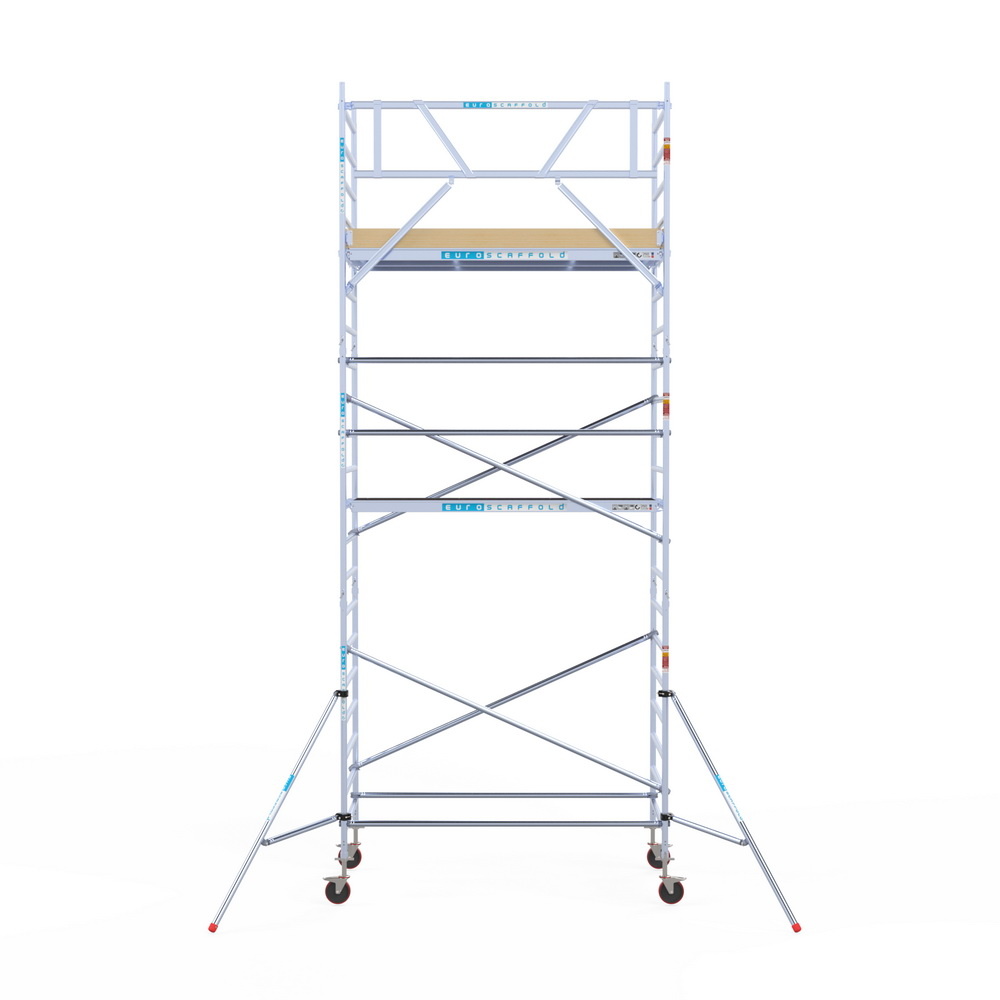 Lichtgewicht aluminium rolsteiger van Euroscaffold met carbon steigervloeren. Ideaal als u niet zwaar kan tillen. Zowel aluminium als carbon is licht in gewicht. Deze rolsteiger voldoet aan alle verplichte veiligheidseisen.