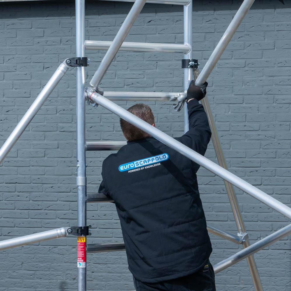 Rolsteiger Euroscaffold Basic 135x250 8,2m werkhoogte tegen de gevel