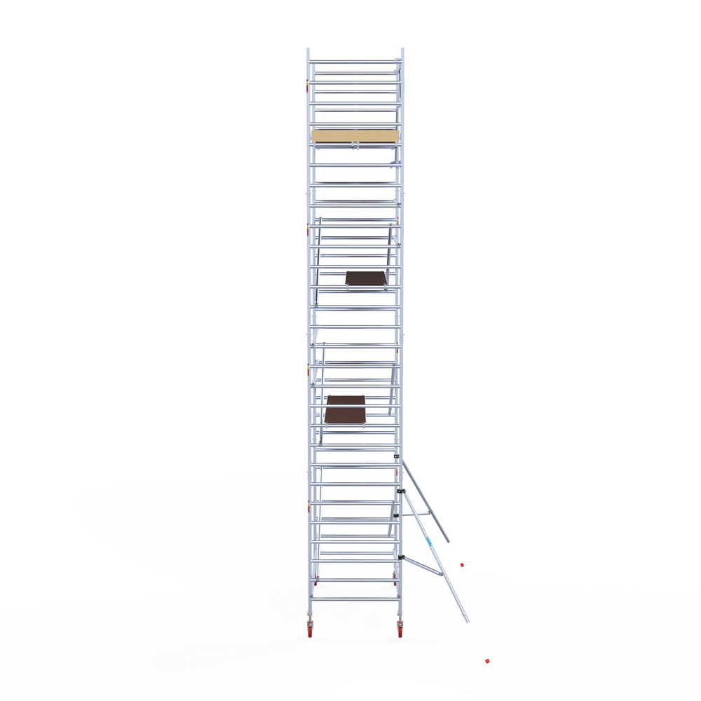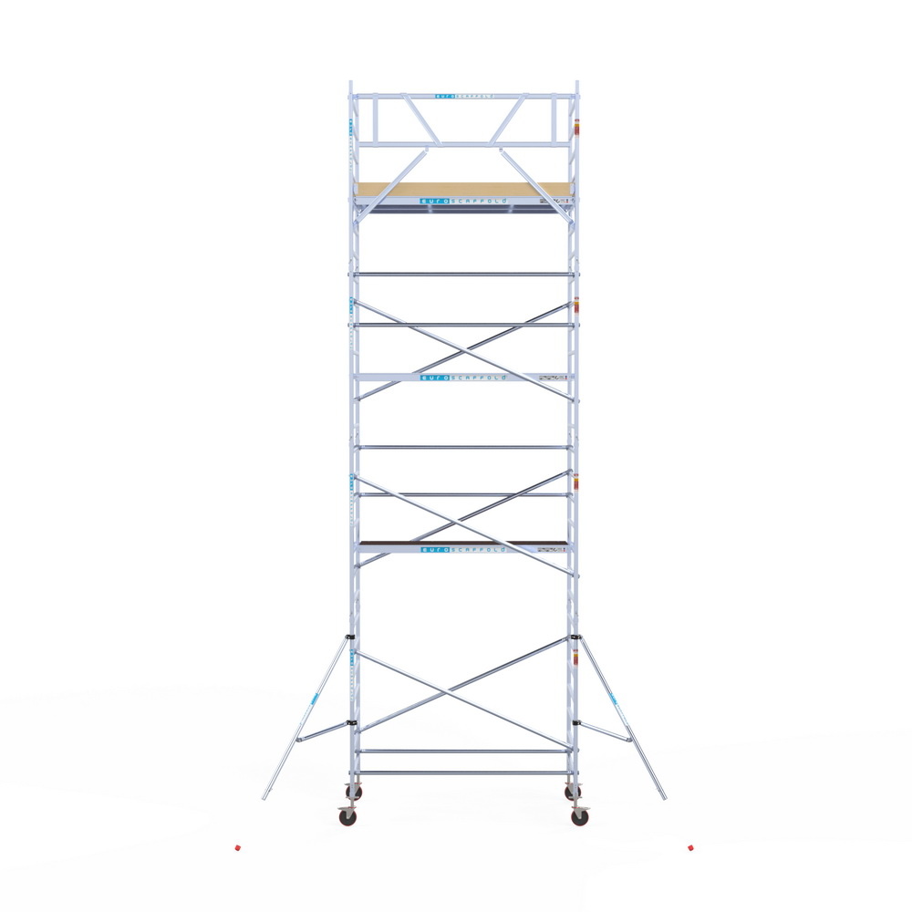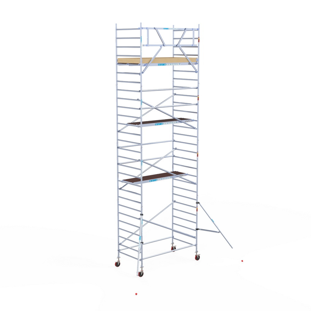 Gecertificeerde rolsteiger van het Nederlandse steigermerk Euroscaffold. Gemaakt van hoogwaardig en lichtgewicht aluminium en carbon vloeren. Deze vloeren zijn vele malen lichter in gewicht dan houten vloeren.
