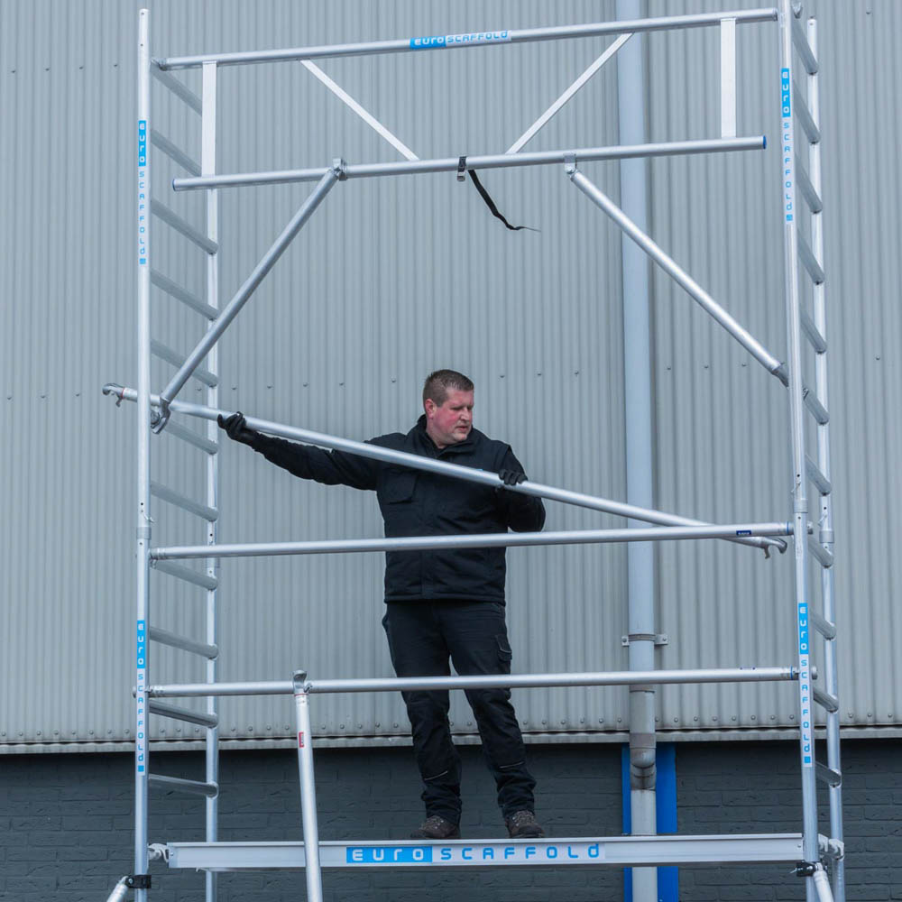 Rolsteiger Euroscaffold Basic 135x305 9,2m werkhoogte tegen de gevel
