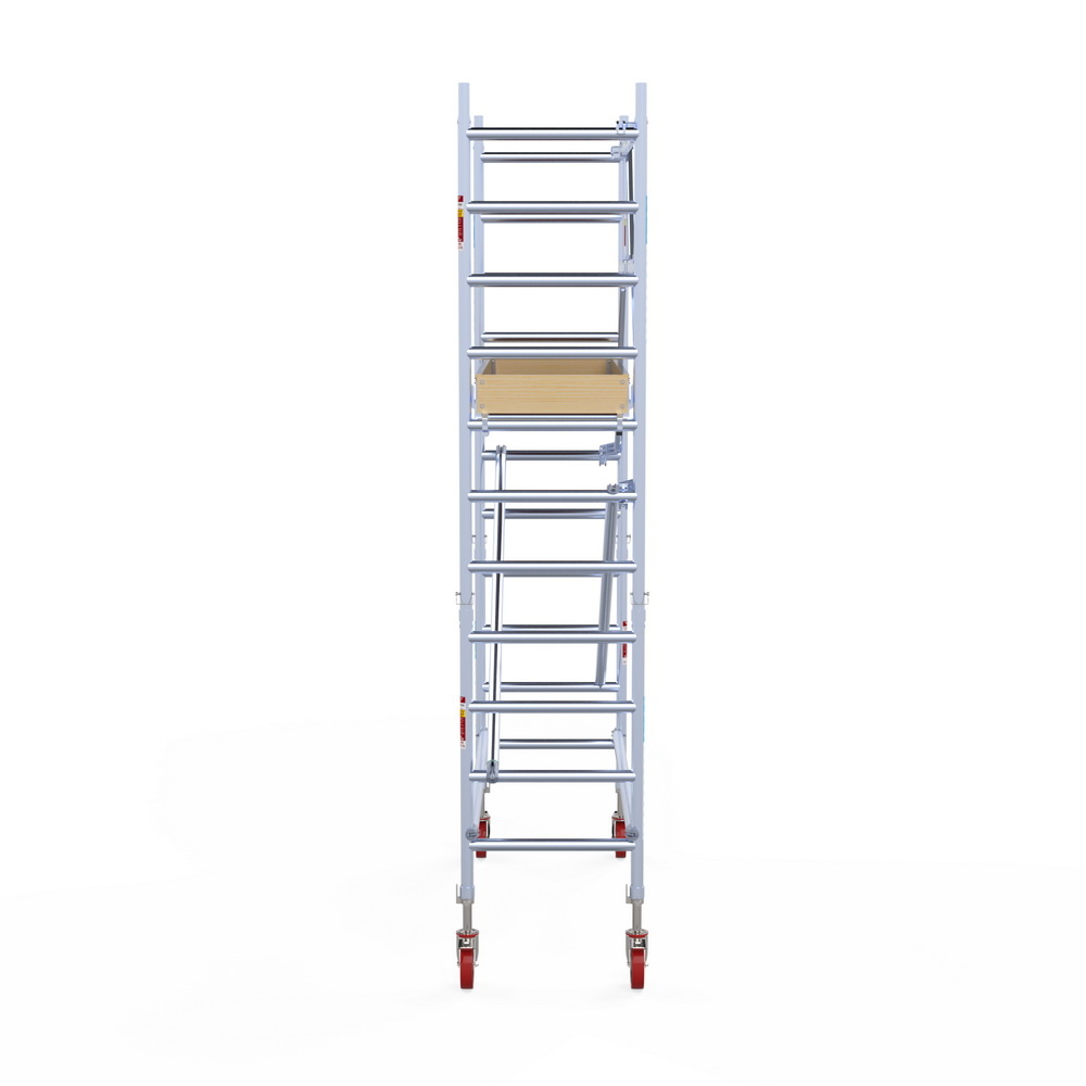 Uiterst populaire rolsteiger van Euroscaffold. Voldoet aan de regelgeving voor veilig werken op hoogte. Zeer snel en eenvoudig opgebouwd dankzij het lichtgewicht aluminium waar de steigeronderdelen van gemaakt zijn.