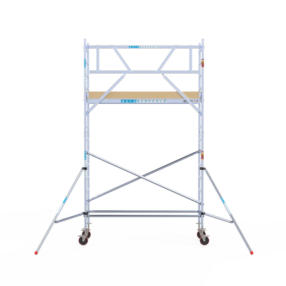Deze aluminium basis rolsteiger heeft een werkhoogte van 5,2 meter, een breedte van 75 cm en is 2,50 meter lang. De rolsteiger is volledig veilig verklaard en beschikt over de NEN-EN rolsteigernorm 1004.