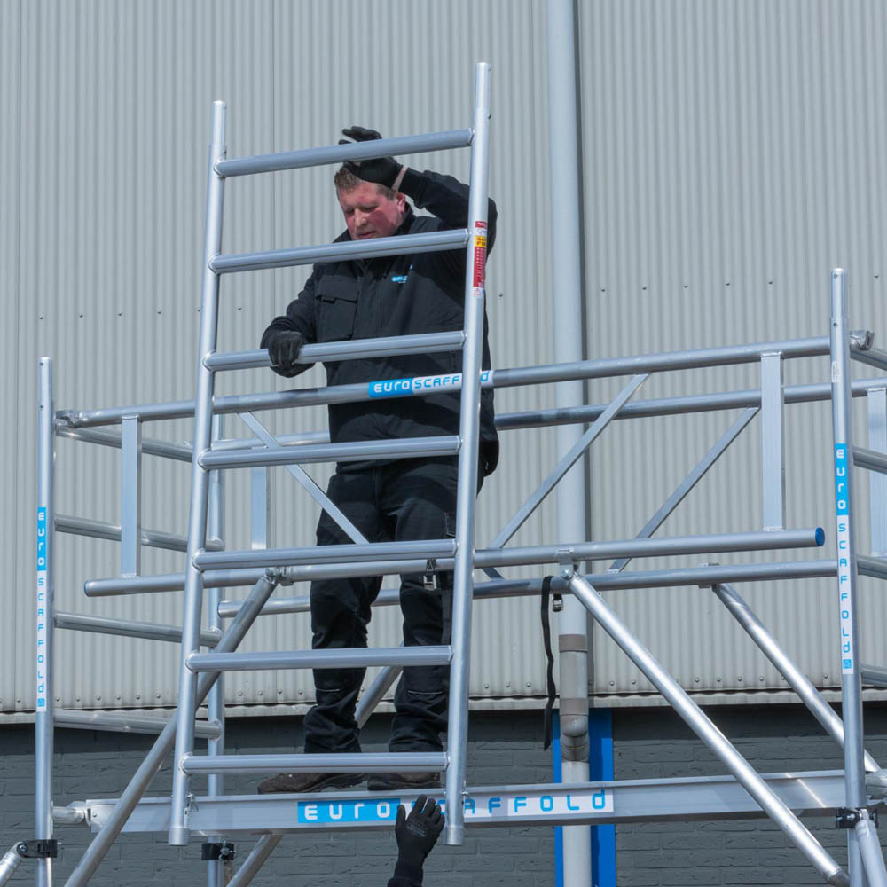 Rolsteiger Euroscaffold Basic 75x305 7,2m werkhoogte tegen de gevel
