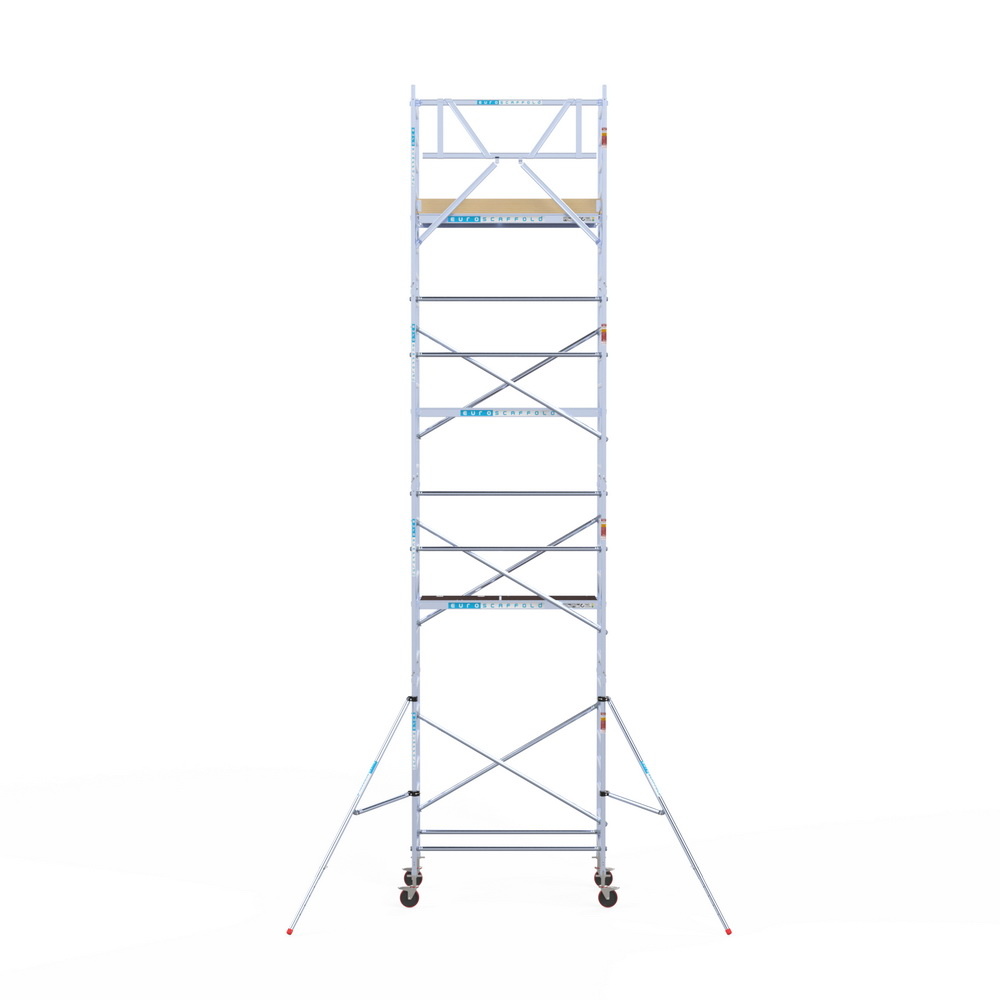 Rolsteiger type: Basic. Voor semi-professioneel gebruik of doe-het-zelvers. De steiger heeft een werkhoogte van 9,2 meter, een breedte van 90 cm en een lengte van 190 cm.