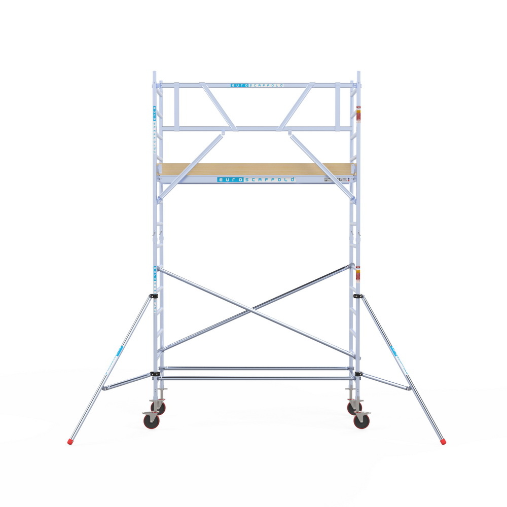 Deze aluminium basis rolsteiger heeft een werkhoogte van 5,2 meter, een breedte van 90 cm en is 2,50 meter lang. Deze rolsteiger, met 5 jaar fabrieksgarantie, is compleet gecertificeerd en voldoet aan de Nederlandse wetgeving.