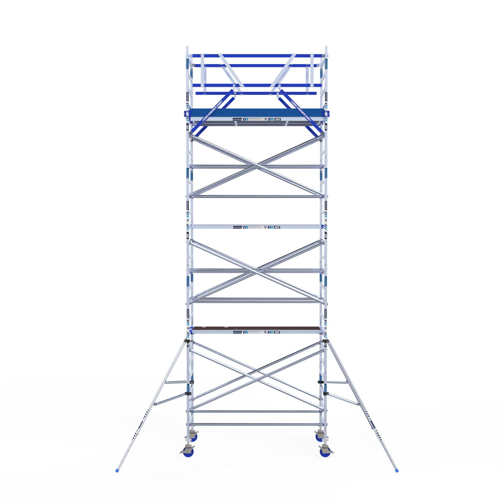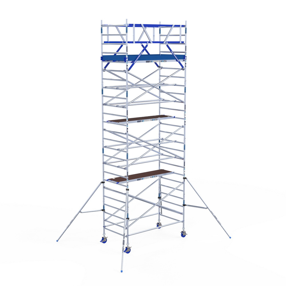 Kies de juiste werkhoogte voor uw rolsteiger. Werkhoogte wordt als volgt berekend: de hoogte van het hoogste platform plus de gemiddelde hoogte van de handen als een persoon met omhoog gestrekte armen werkt (hiervoor rekenen we 2 meter). De formule om de werkhoogte te berekenen is dus: platformhoogte + 2 meter.