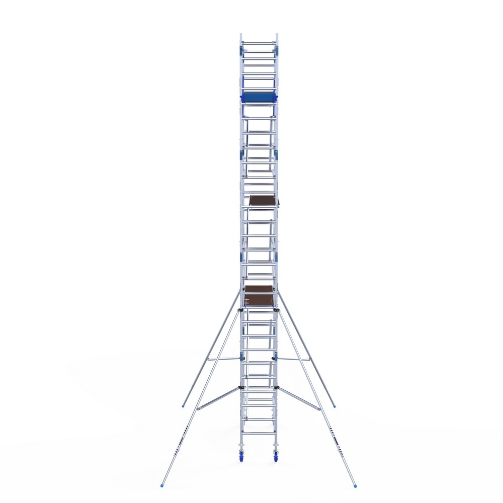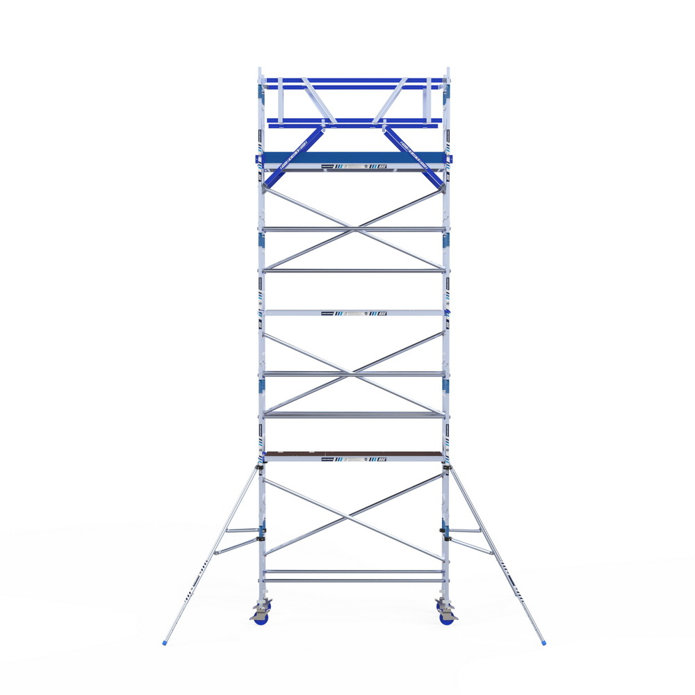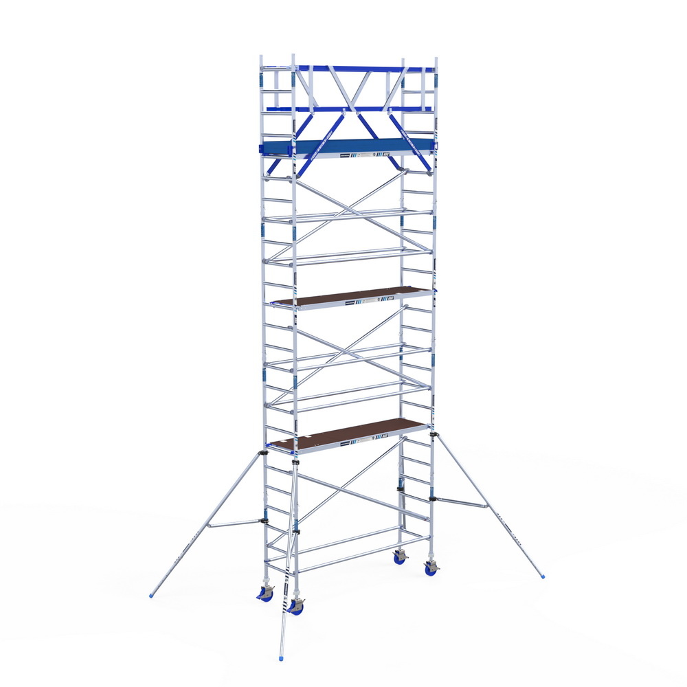 Kies de juiste werkhoogte voor uw rolsteiger. Werkhoogte wordt als volgt berekend: de hoogte van het hoogste platform plus de gemiddelde hoogte van de handen als een persoon met omhoog gestrekte armen werkt (hiervoor rekenen we 2 meter). De formule om de werkhoogte te berekenen is dus: platformhoogte + 2 meter.