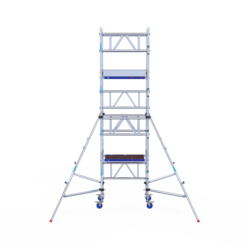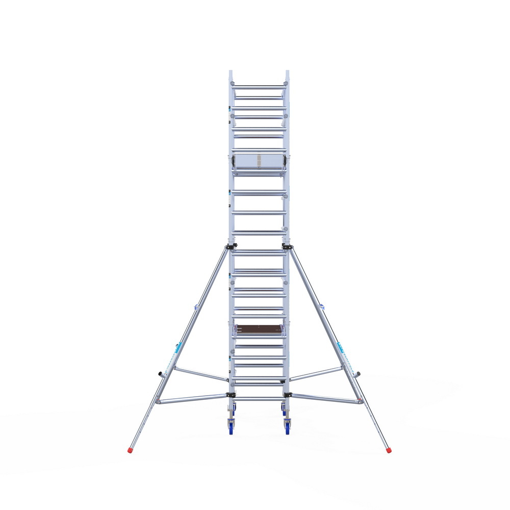 De mobiliteit van de Euroscaffold One rolsteigers wordt verder versterkt door hun geavanceerde wielsysteem. De wielen zijn ontworpen om soepel te bewegen over verschillende oppervlakken, waardoor de steigers gemakkelijk kunnen worden verplaatst zonder veel fysieke inspanning. Dit is vooral handig in werkomgevingen waar de steiger vaak van plaats moet veranderen, zoals in grote magazijnen, commerciële gebouwen of tijdens evenementen.