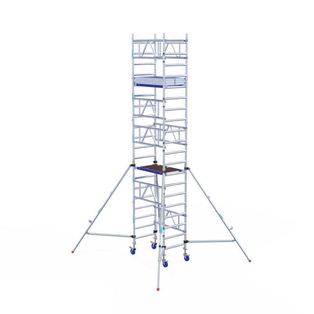 Een belangrijk kenmerk van de Euroscaffold One rolsteigers is het compacte ontwerp. Dankzij de smalle afmetingen kunnen deze steigers eenvoudig door nauwe doorgangen worden gemanoeuvreerd en in beperkte ruimtes worden opgesteld. Dit maakt ze ideaal voor gebruik in stedelijke omgevingen of binnenshuis, waar de ruimte vaak beperkt is. Het lichtgewicht aluminium frame draagt bij aan de eenvoudige verplaatsbaarheid, waardoor één persoon de steiger zonder veel moeite kan opzetten, verplaatsen en afbreken.