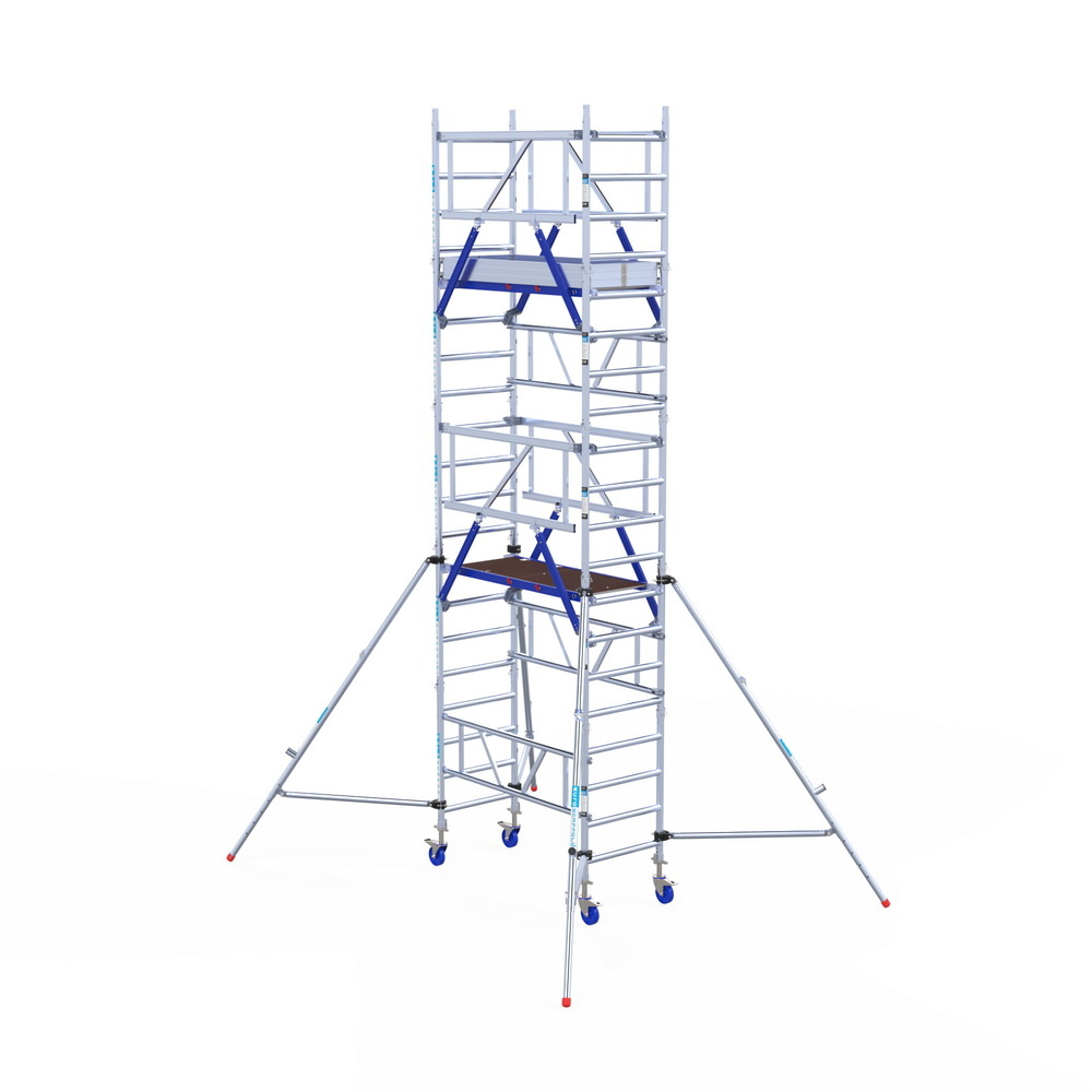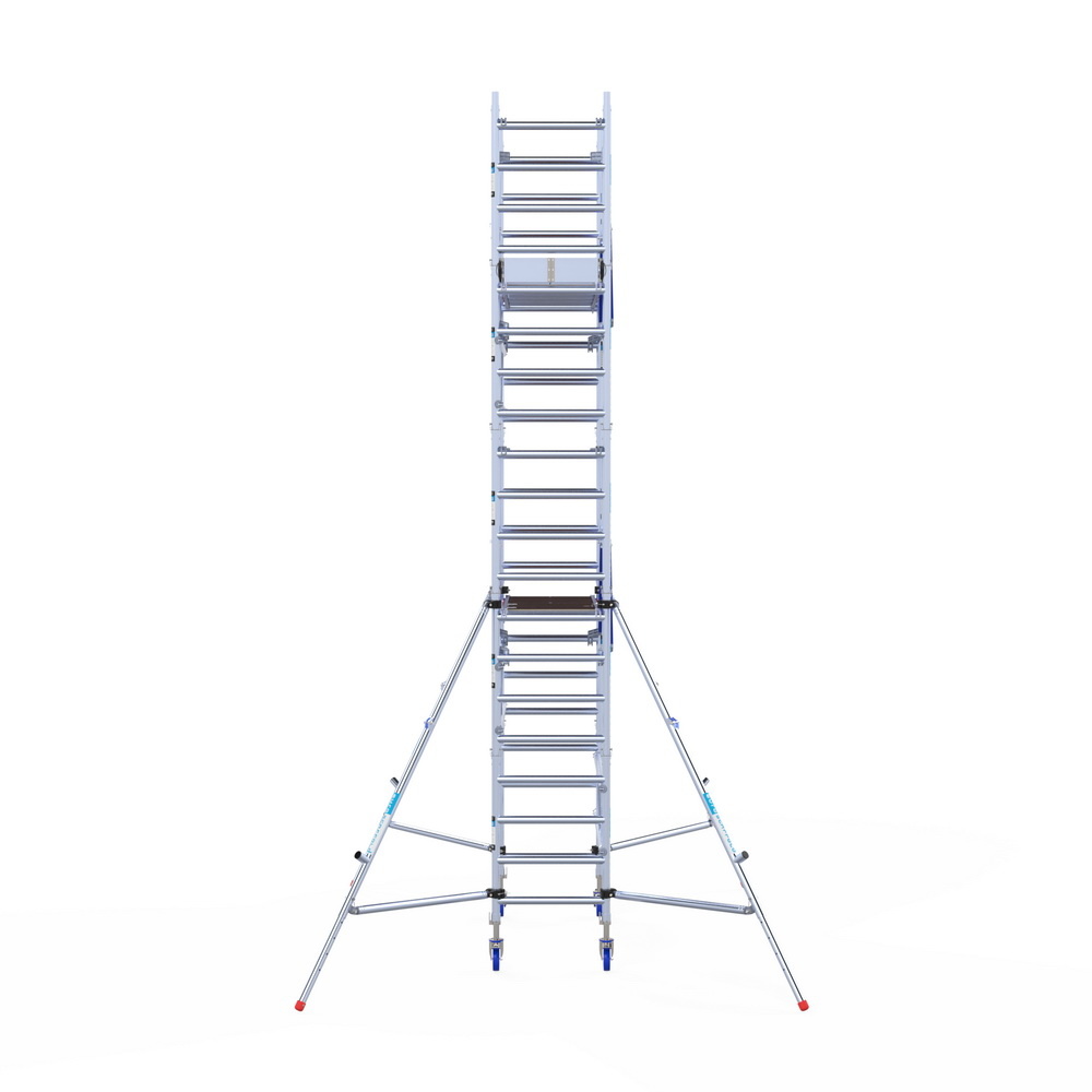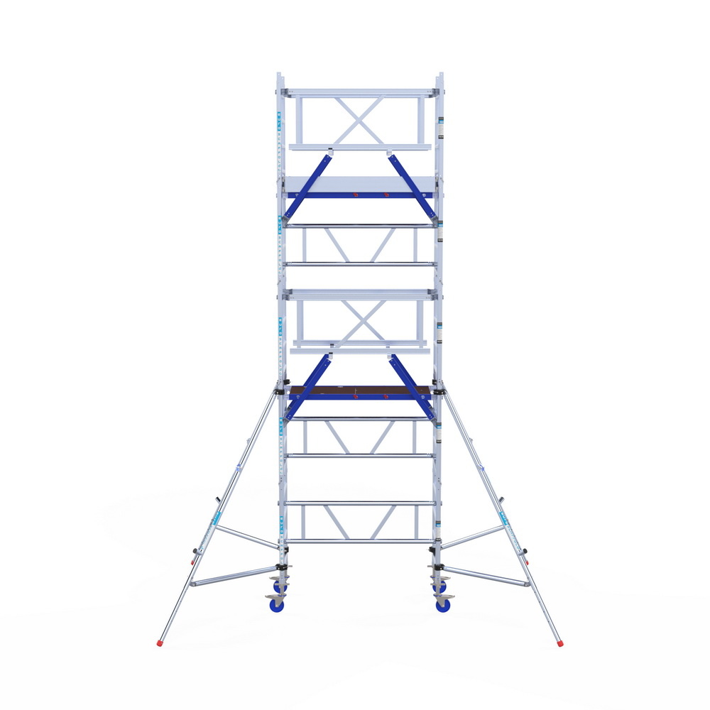 De Euroscaffold One XL PRO blinkt uit in compactheid en is daarom zeer geschikt om ook indoor te gebruiken. Voorzien van voorloopleuningen en carbon (lichtgewicht) steigervloeren voor het extra veilig en snel opbouwen van de steiger.