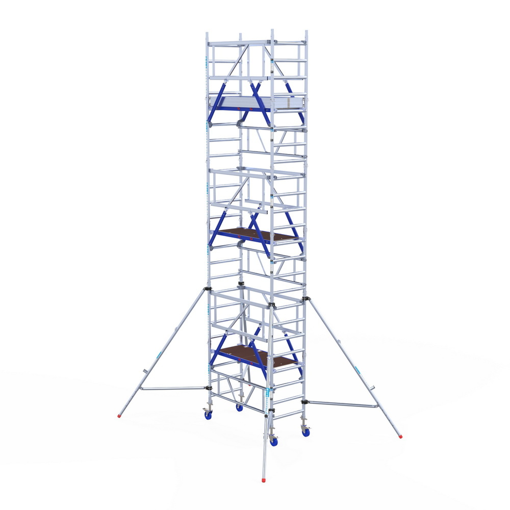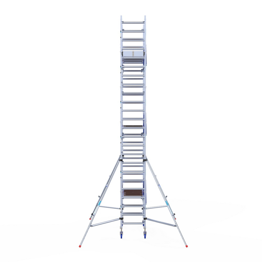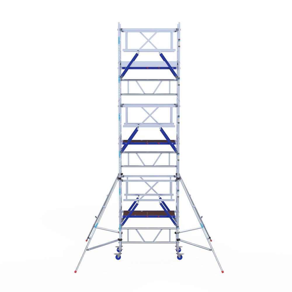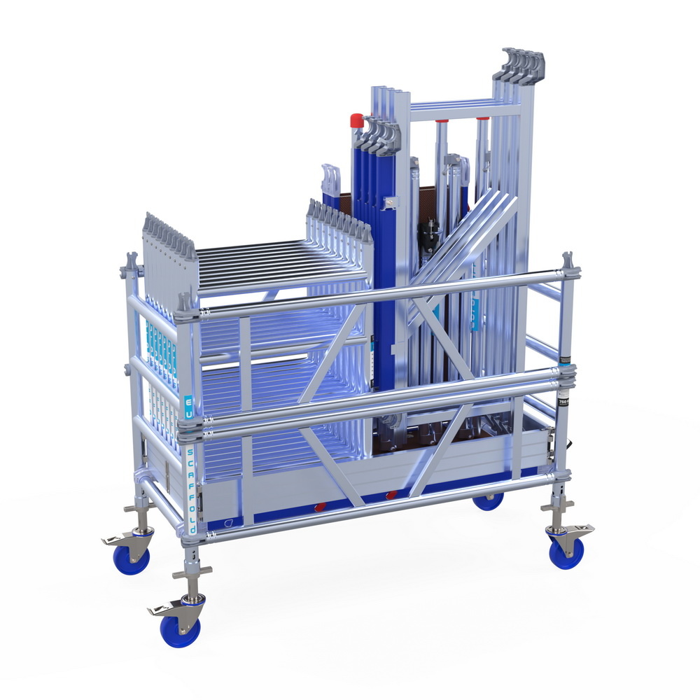 De Euroscaffold One XL PRO blinkt uit in compactheid en is daarom zeer geschikt om ook indoor te gebruiken. Voorzien van voorloopleuningen en carbon (lichtgewicht) steigervloeren voor het extra veilig en snel opbouwen van de steiger.