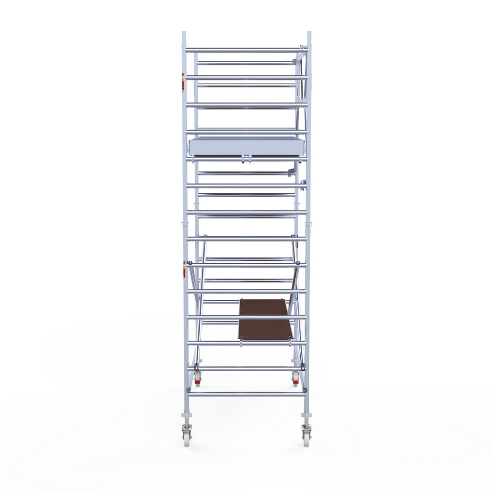 Zeer populaire rolsteiger van het bekende steigermerk Euroscaffold. De rolsteiger is verder uit te breiden in bijvoorbeeld werkhoogte of als vrijstaande steiger, door extra steigeronderdelen toe te voegen, zoals stabilisatoren.