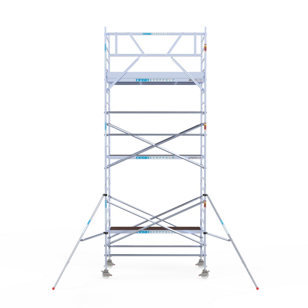 Zeer complete rolsteiger set van Euroscaffold. Voorzien van lichtgewicht steigervloeren en een voorloopleuning bovenin de steiger voor het veilig opbouwen en afbreken van de steiger. Gefabriceerd van duurzaam aluminium voor een lange levensduur.