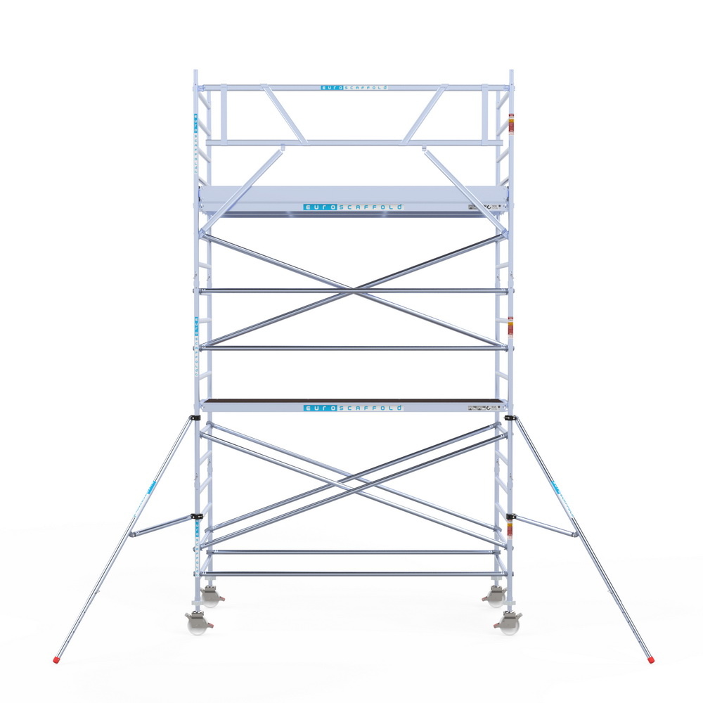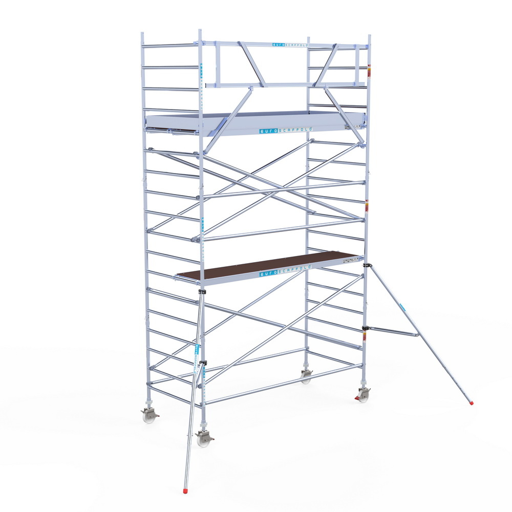 Op deze rolsteiger van het merk Euroscaffold heeft u 5 jaar garantie. De steiger heeft een breedte van 135 cm, een lengte van 305 cm en een werkhoogte van 6,2 meter. Voldoet aan alle wettelijke normen voor op hoogte werken tegen de gevel.