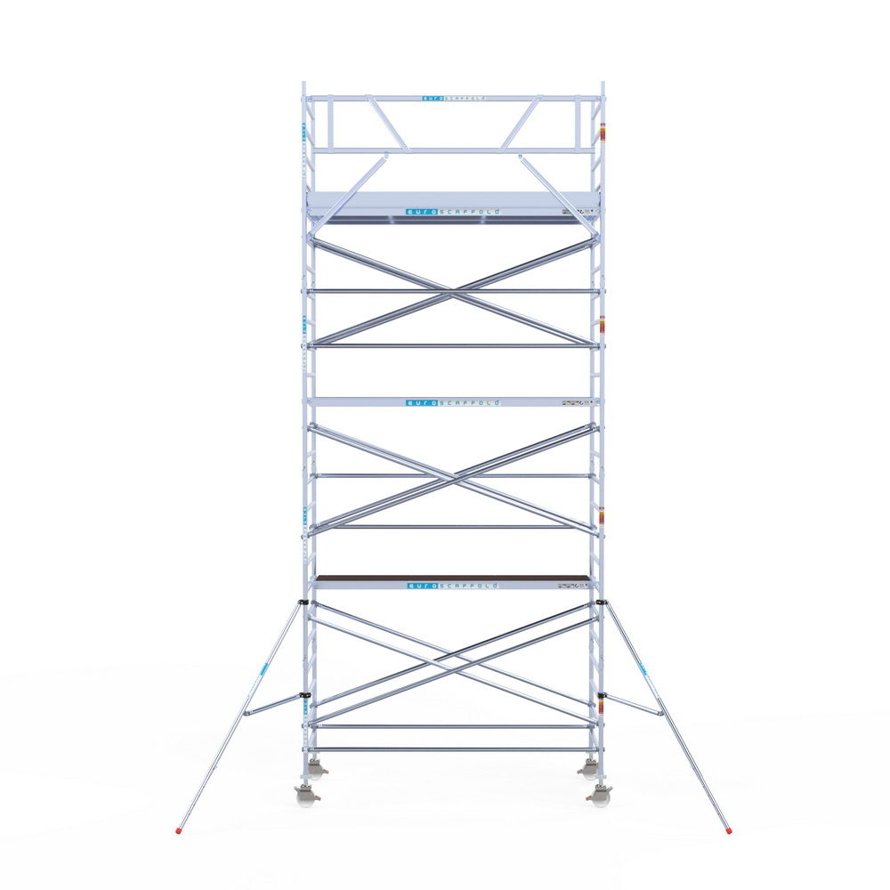 Altijd en overal veilig werken op hoogte met deze Euroscaffold rolsteiger. Tegen de gevel? Geen probleem! Toch liever de rolsteiger vrijstaand plaatsen? Vul de steiger eenvoudig aan met schoren, voorloopleuningen en stabilisatoren.