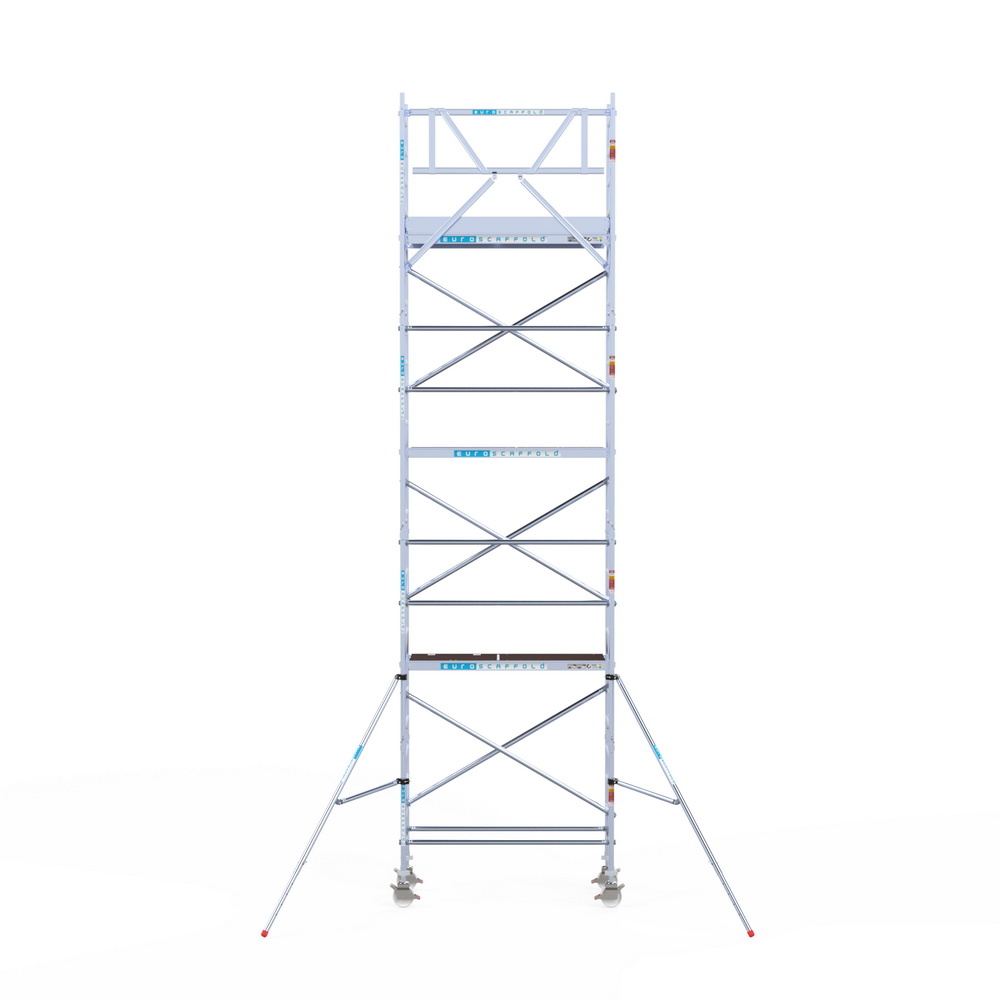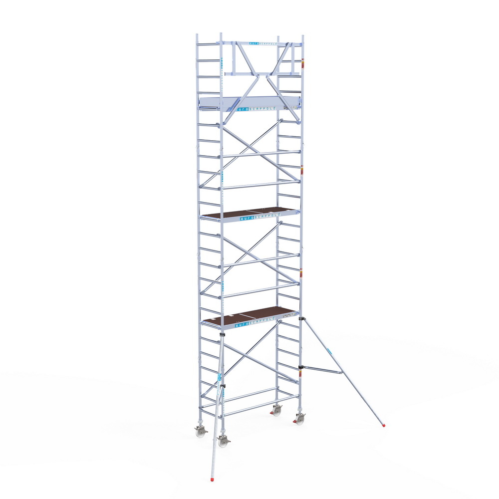 Deze compacte Euroscaffold rolsteiger neemt beperkte ruimte in, maar toch kan u op flinke hoogte werken. De steiger heeft een breedte van 75 cm, een lengte van 190 cm en een werkhoogte van 8,2 meter. Deze steiger staat bekend om een groot gebruiksgemak.