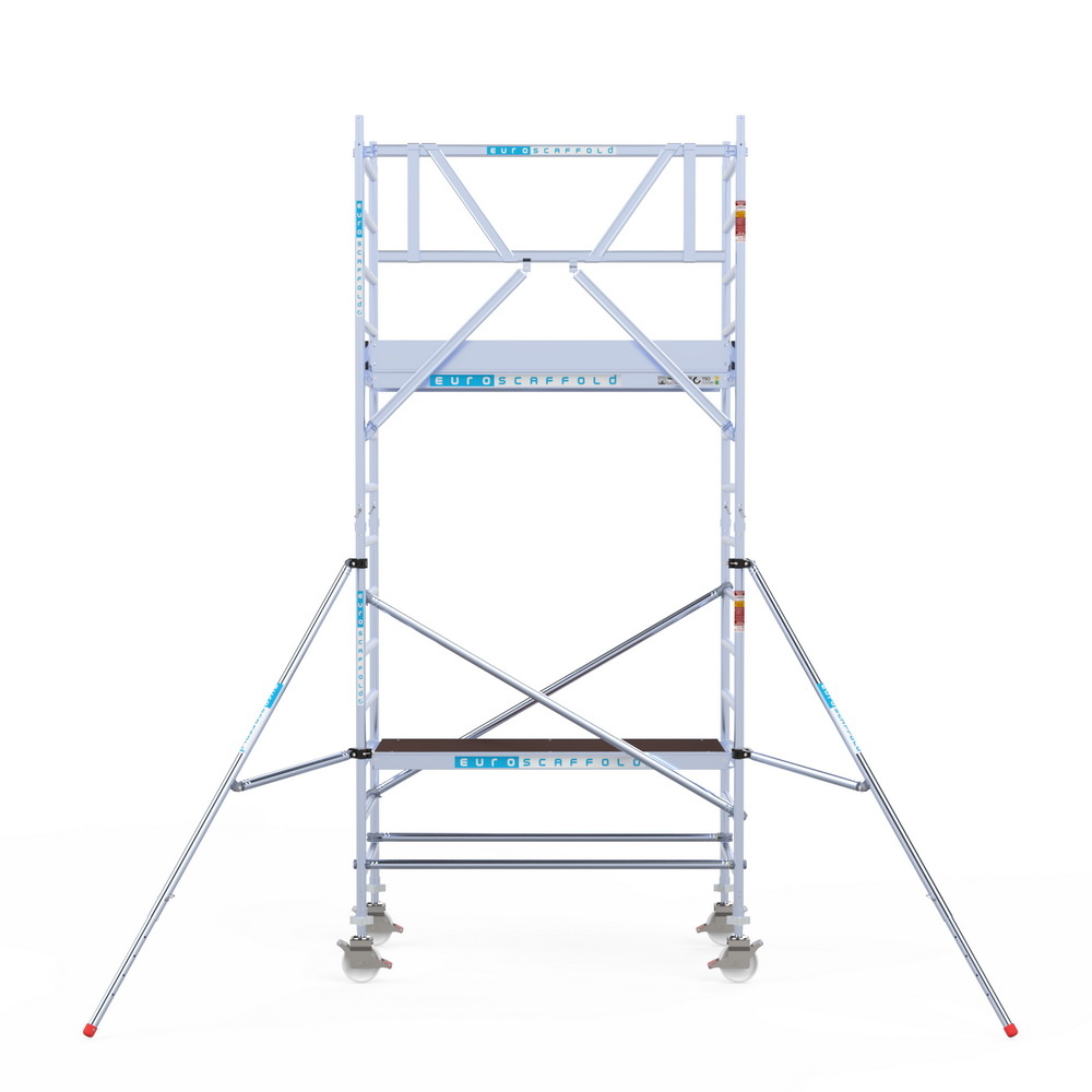 Deze populaire steiger heeft het allemaal; compact, licht in gewicht, maar toch zeer stevig en duurzaam. De rolsteiger heeft een breedte van 90 cm, een lengte van 190 cm en een werkhoogte van 5,2 meter. Makkelijk op te bouwen en te verplaatsen.