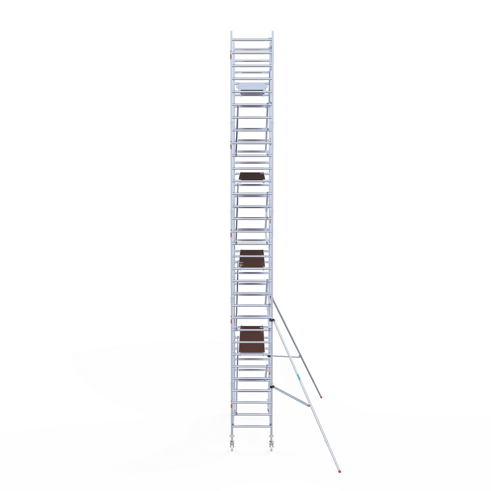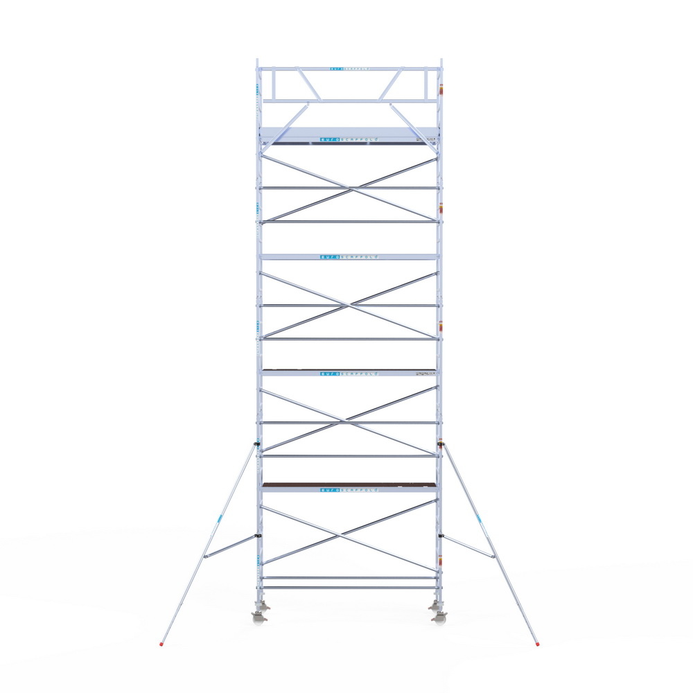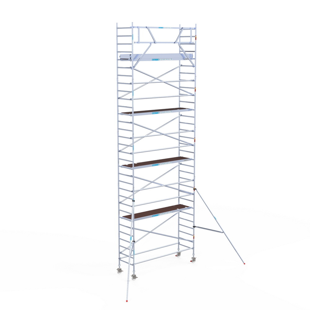 Aluminium rolsteiger kopen? Deze rolsteiger heeft een breedte van 90 cm, een lengte van 305 cm en een werkhoogte van 10,2 meter. Beschikt over alle verplichte veiligheidscertificaten. Geproduceerd in Nederland.