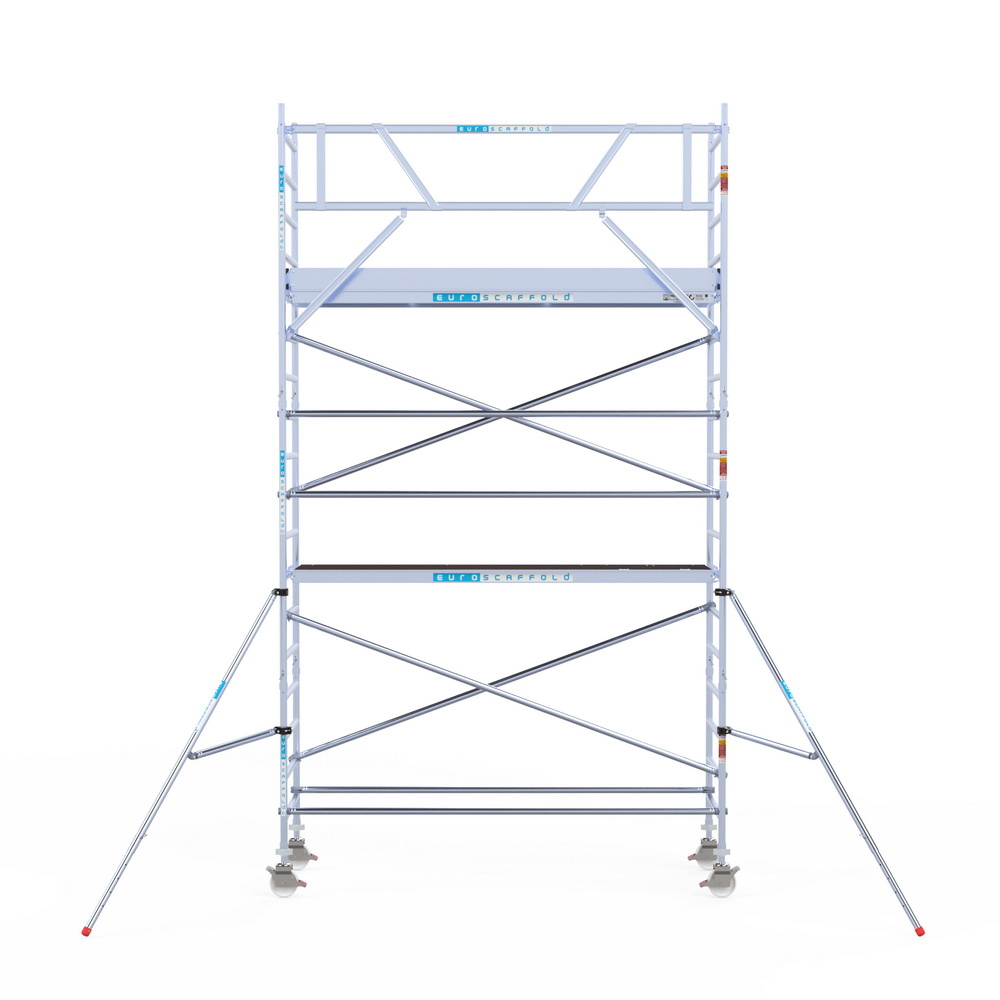 Makkelijk op te bouwen Euroscaffold rolsteiger van duurzaam aluminium. De rolsteiger heeft een breedte van 90 cm, een lengte van 305 cm en een werkhoogte van 6,2 meter. Door de extra lengte van de platformen is er genoeg ruimte om gereedschap mee te nemen