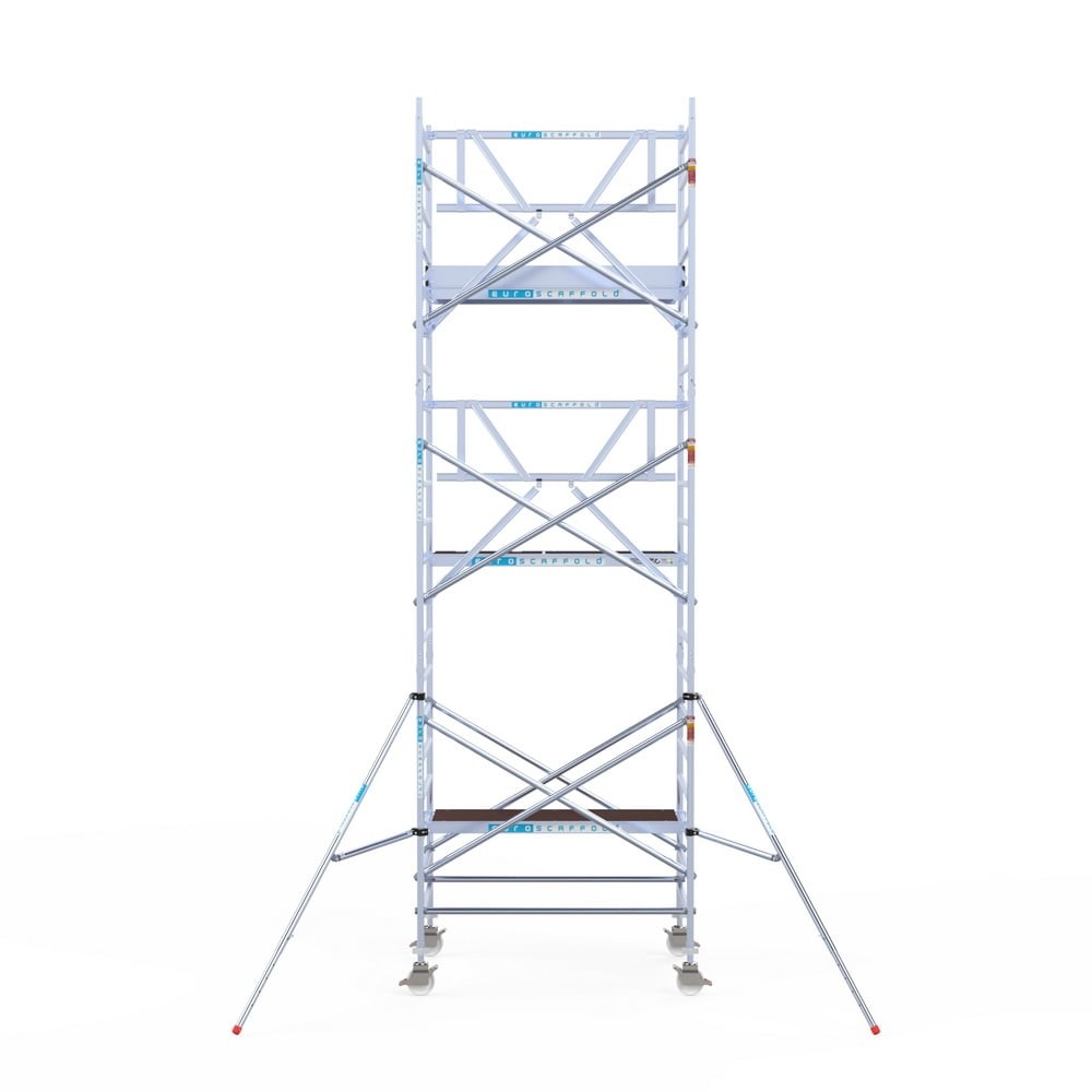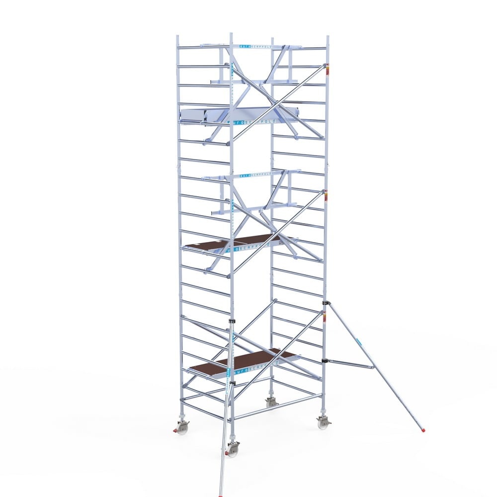 Van Nederlandse makelij: Euroscaffold rolsteiger met extra groot werkoppervlak is geschikt voor professioneel gebruik. De rolsteiger heeft een breedte van 135 cm, een lengte van 190 cm en een werkhoogte van 7,2 meter. Compleet en veilig.