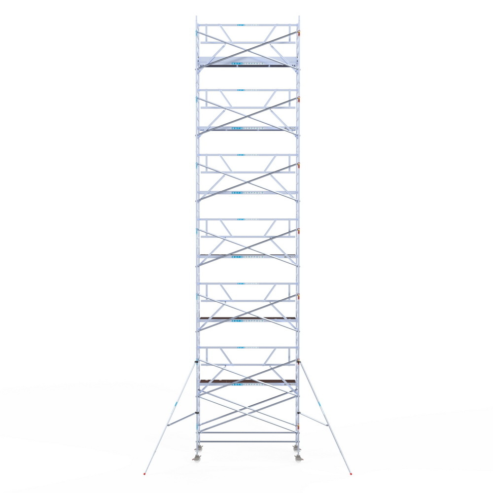 Kies de juiste werkhoogte voor uw rolsteiger. Werkhoogte wordt als volgt berekend: de hoogte van het hoogste platform plus de gemiddelde hoogte van de handen als een persoon met omhoog gestrekte armen werkt (hiervoor rekenen we 2 meter). De formule om de werkhoogte te berekenen is dus: platformhoogte + 2 meter.