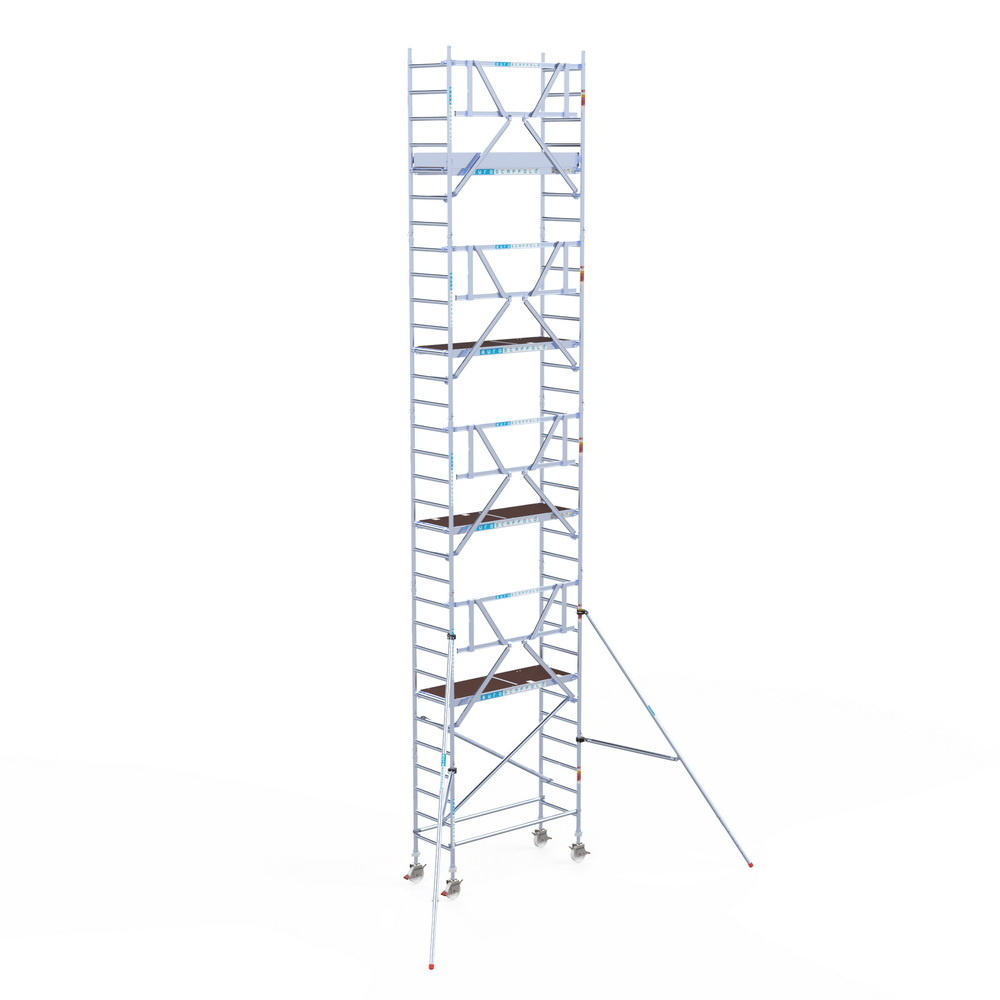 Gevel renoveren of schilderen in een smalle tuin of straat? Deze compacte rolsteiger heeft een breedte van 75 cm, een lengte van 190 cm en een werkhoogte van 10,2 meter. De steiger heeft een lange levensduur en is in zeer korte tijd opgebouwd.