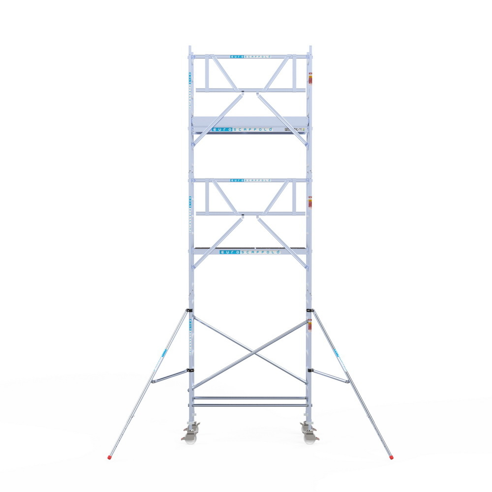Veel ruimte neemt deze Euroscaffold steiger niet in. Compact, snel opgebouwd en makkelijk te verplaatsen. De rolsteiger heeft een breedte van 75 cm, een lengte van 190 cm en een werkhoogte van 7,2 meter. Prima keuze!