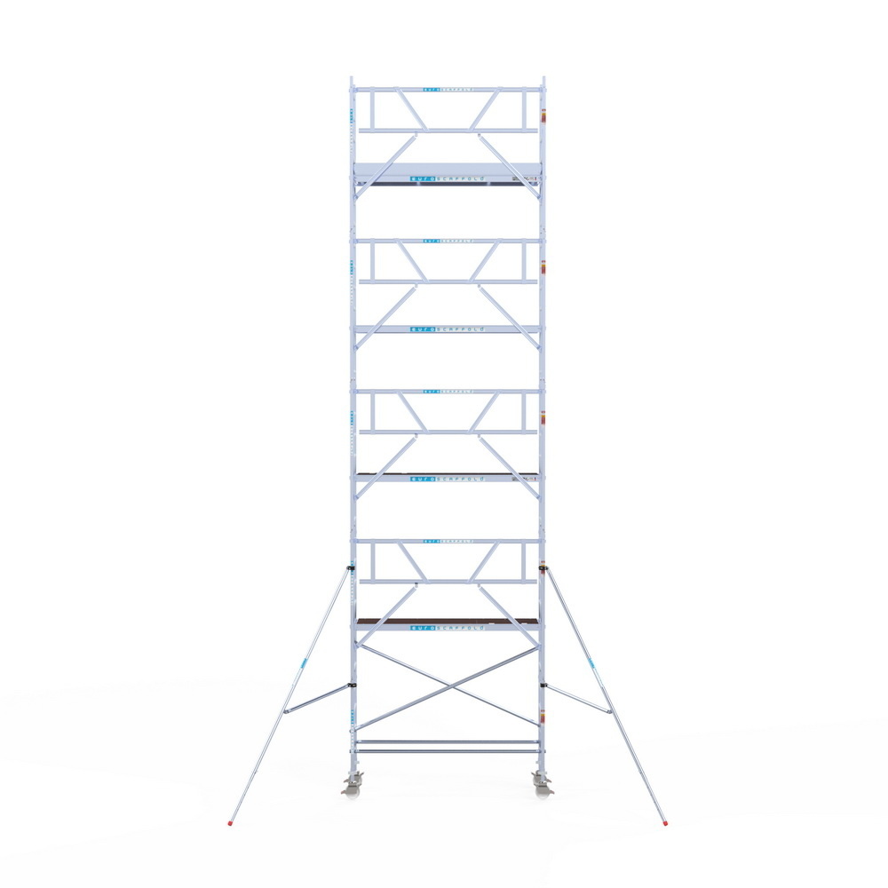 Smalle Euroscaffold rolsteiger, ideaal voor werken op hoogte in smalle steegjes. De rolsteiger heeft een breedte van 75 cm, een lengte van 305 cm en een werkhoogte van 8,2 meter. Geleverd met 5 jaar garantie.