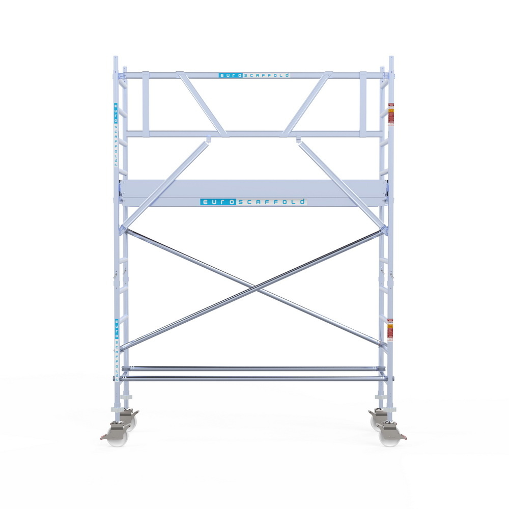 Professionele rolsteiger tegen een eerlijke prijs. De rolsteiger heeft een breedte van 75 cm, een lengte van 250 cm en een werkhoogte van 4,2 meter. De Euroscaffold steiger voldoet aan de nieuwe opbouwverplichtingen van 1 januari 2018.